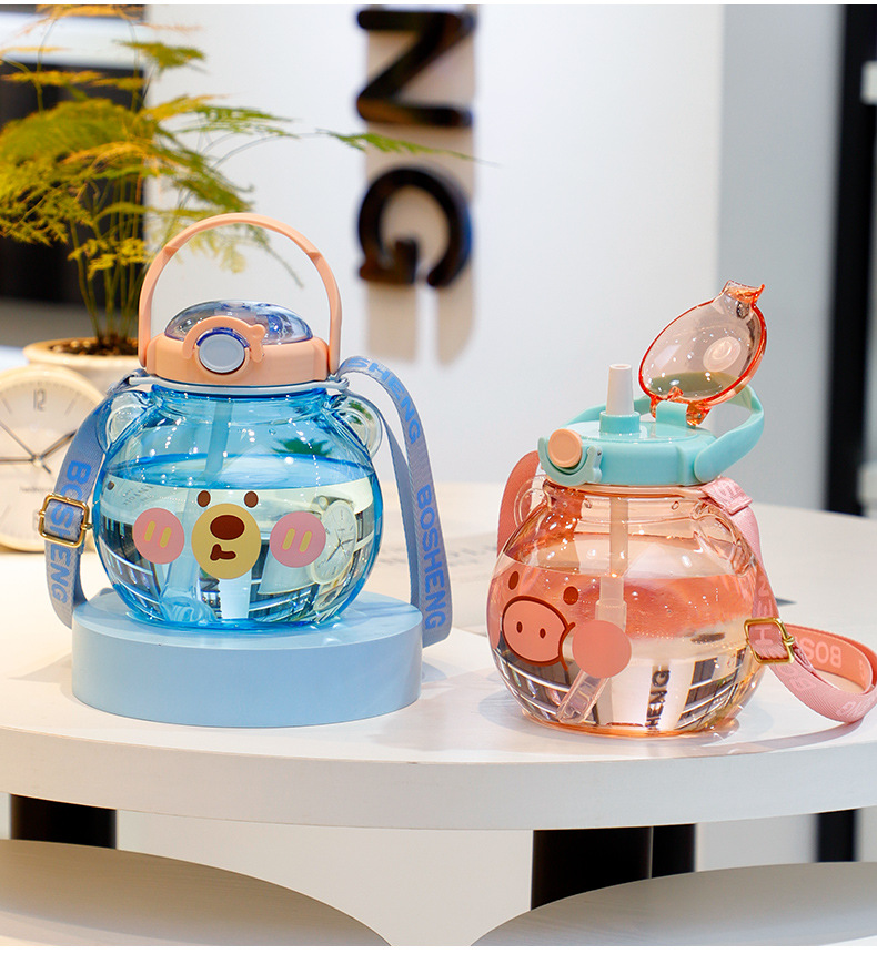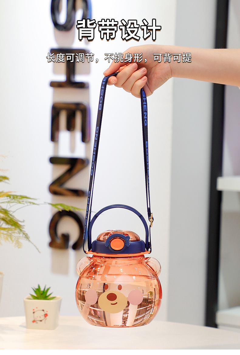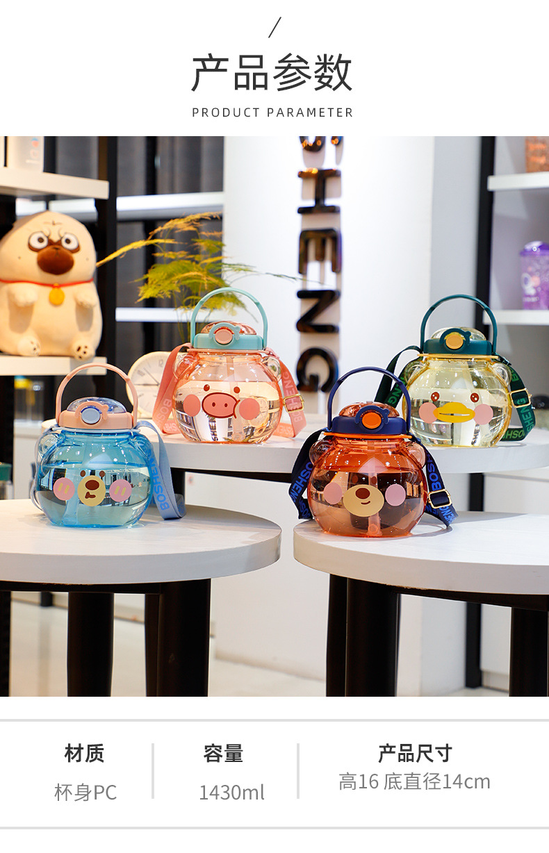 1000ML米多熊塑料杯大容量吸管杯高颜值网红水壶
