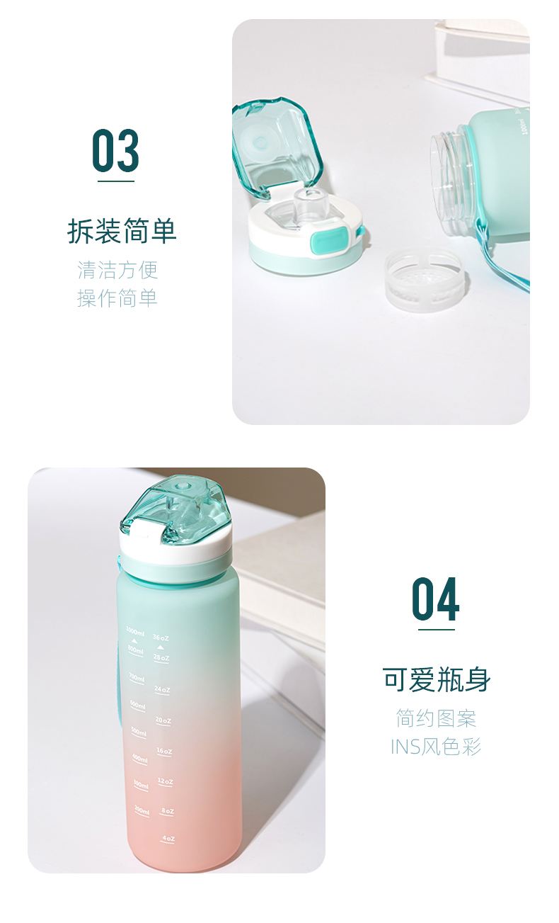 700ML吉恩弹跳运动塑料杯时尚带茶隔户外便携随手杯