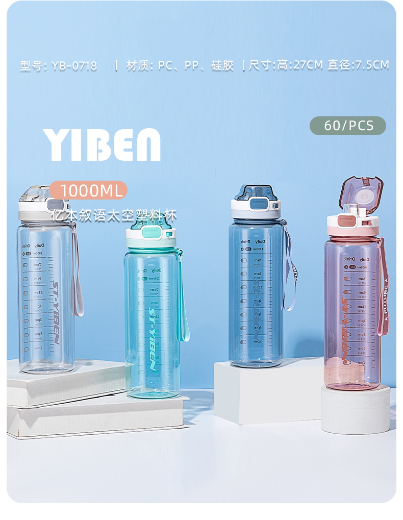 500ML亿本悦色太空杯创意手提绳便携带塑料杯