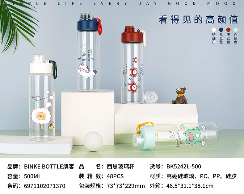 480ML创意杯套款迪欧玻璃杯简约清新个性便携随手杯