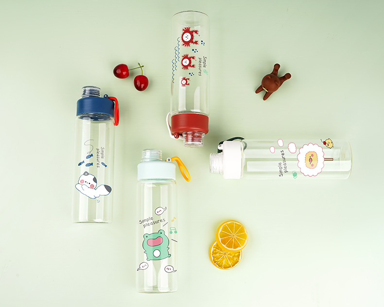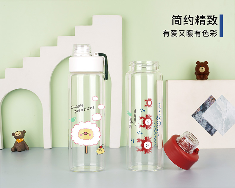 350ML简悦奇趣卡通玻璃杯带茶隔男女士办公水杯子