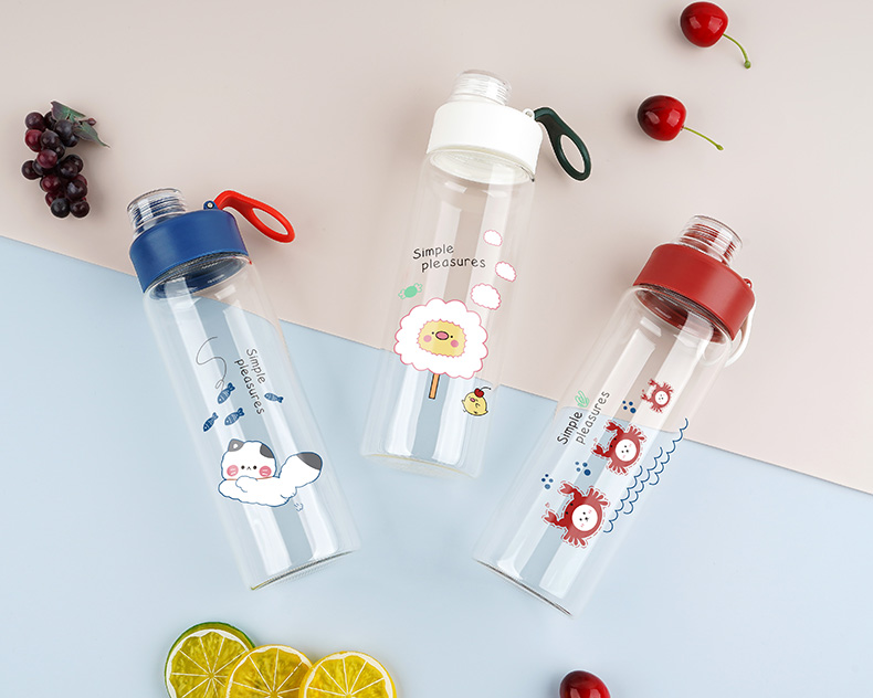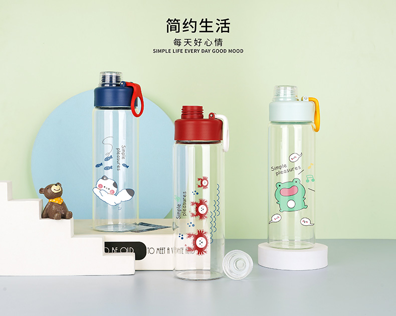 320ML牛奶果汁弹跳吸管玻璃杯学生小清新可爱便携水杯