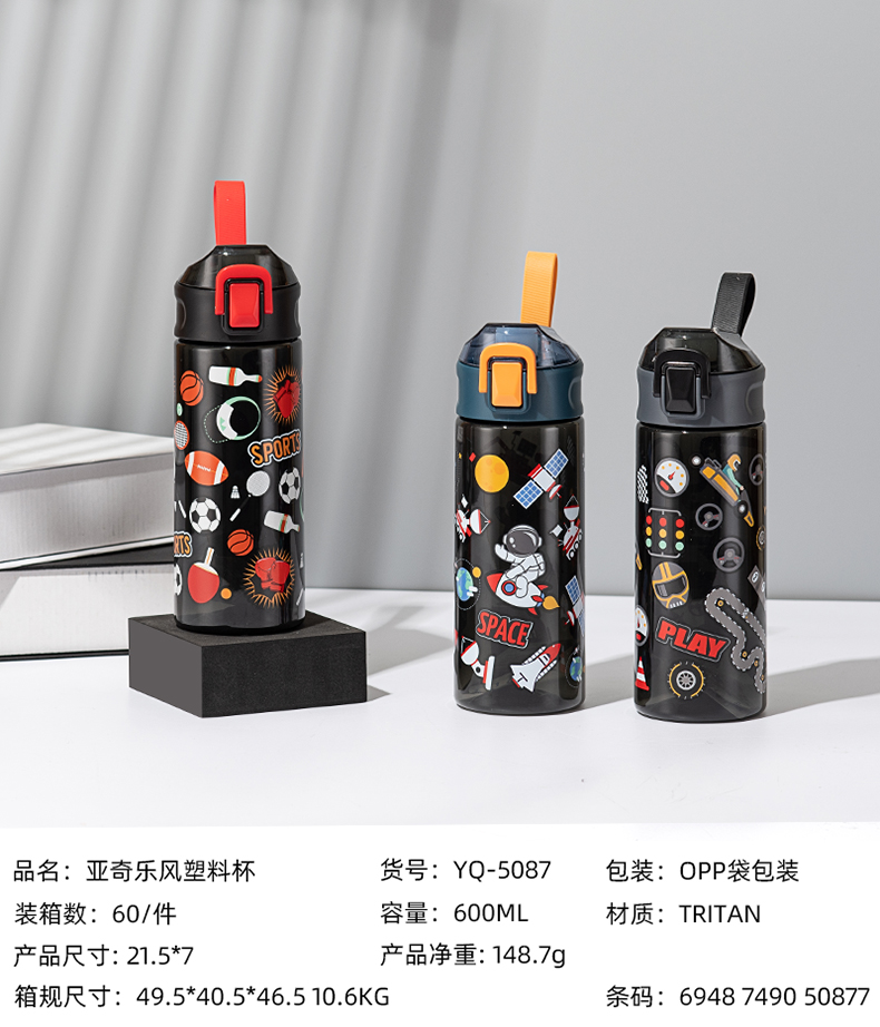 500ML亿本悦色太空杯创意手提绳便携带塑料杯