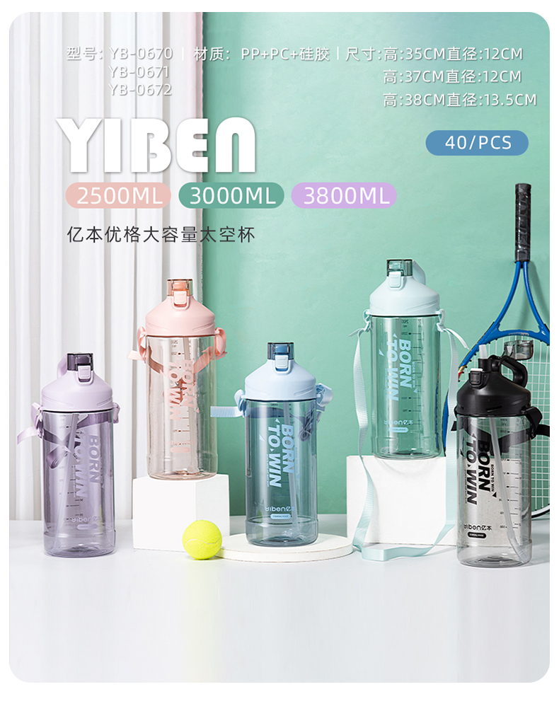 3800ML亿本尊尚大容量太空杯户外运动杯子塑料水壶