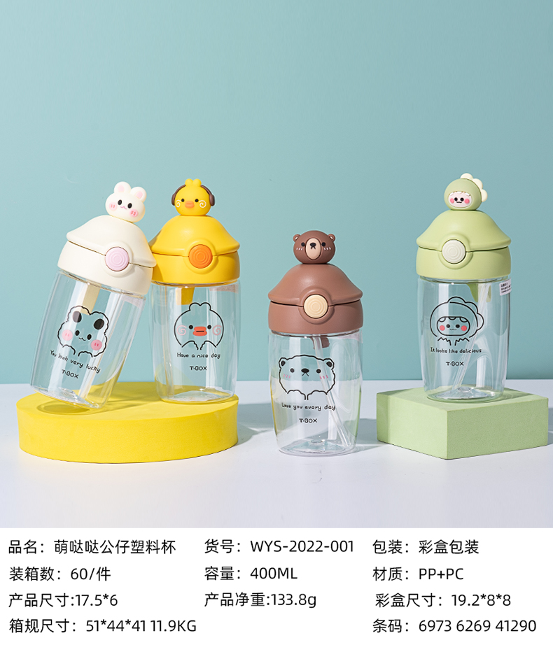 样品星兔创意卡通水杯儿童弹跳吸管杯可爱运动户外背带学生塑料杯