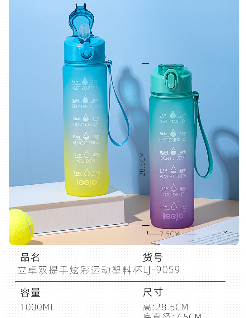 夏季大容量运动水杯塑料便携手提渐变色磨砂健身杯子防摔简约学生