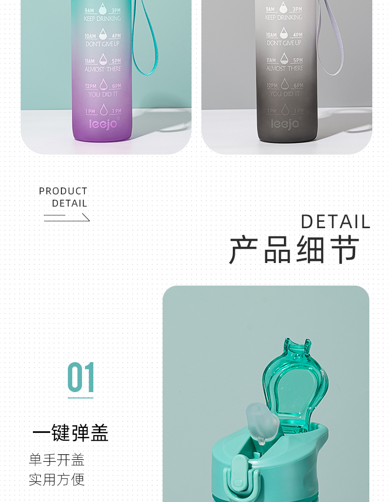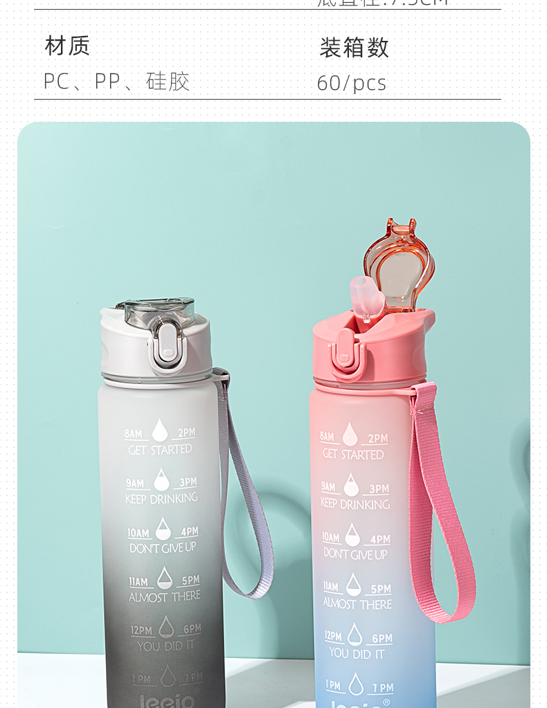 1000ML迷你吨吨塑料杯大容量弹跳盖吸管水杯(彩盒)