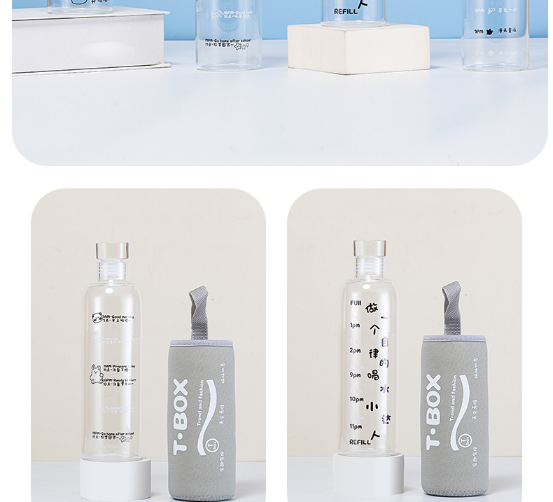 320ML牛奶果汁弹跳吸管玻璃杯学生小清新可爱便携水杯