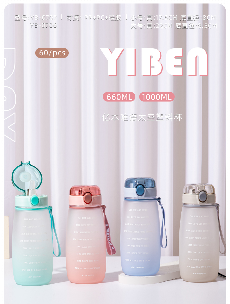500ML亿本悦色太空杯创意手提绳便携带塑料杯