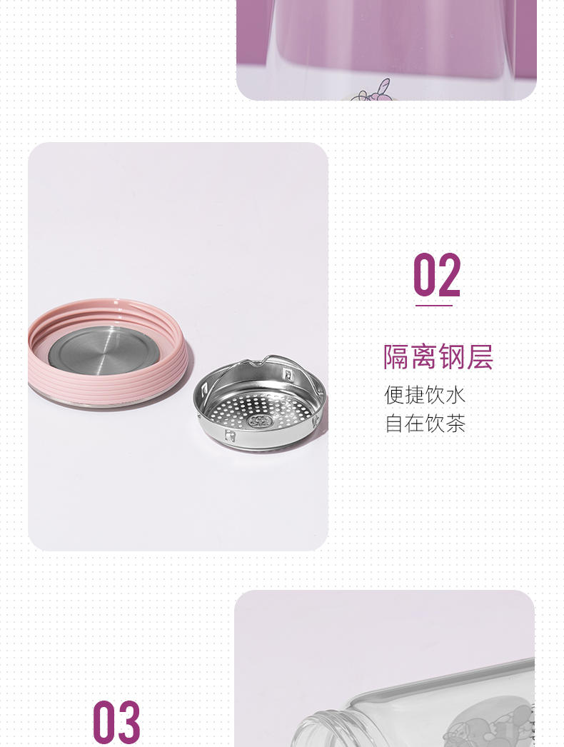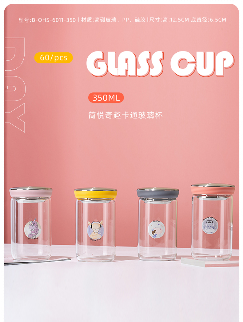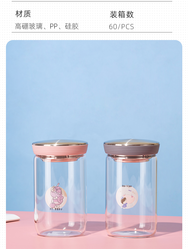 500ml西恩玻璃杯学生情侣小清新可爱便携提手水杯