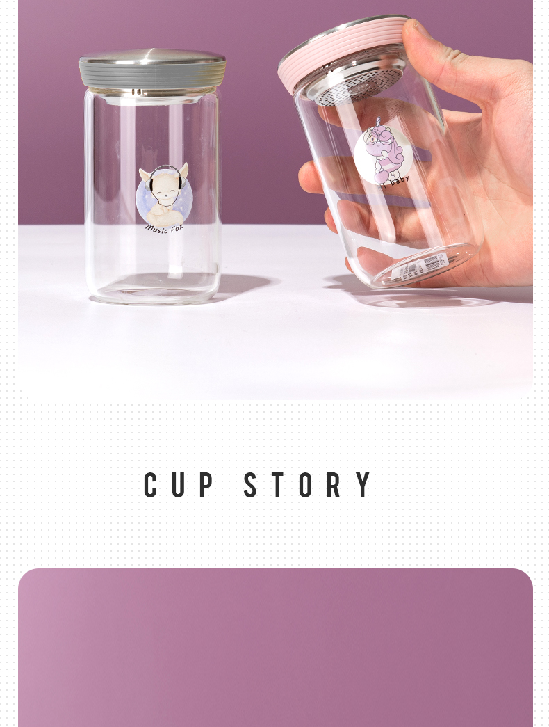 1000ML小熊盖提手玻璃杯