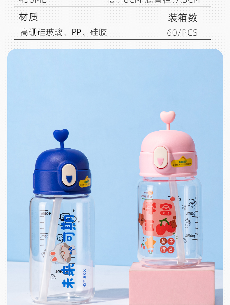 450ML万柿胜意系列吸管玻璃杯清新可爱学生便携水杯