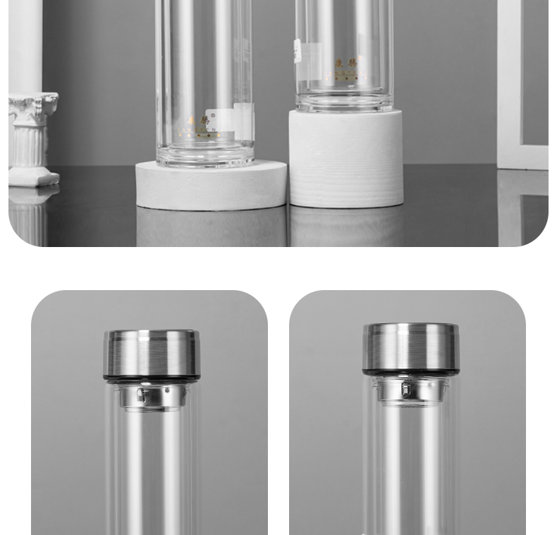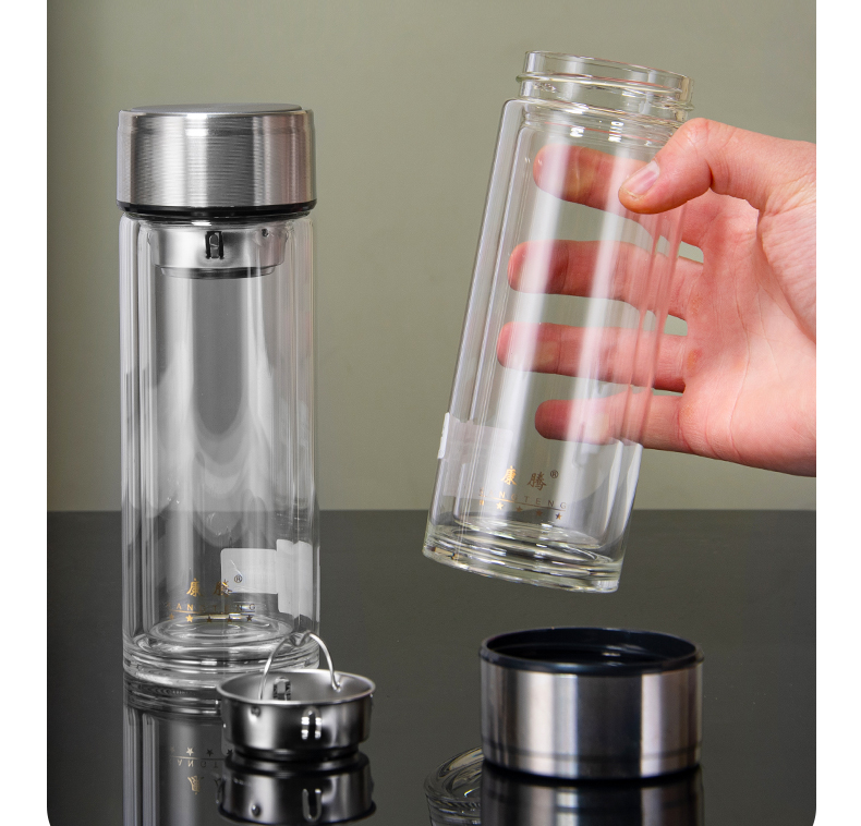 360ML简约商务玻璃杯男士双层泡茶水杯办公礼品杯子