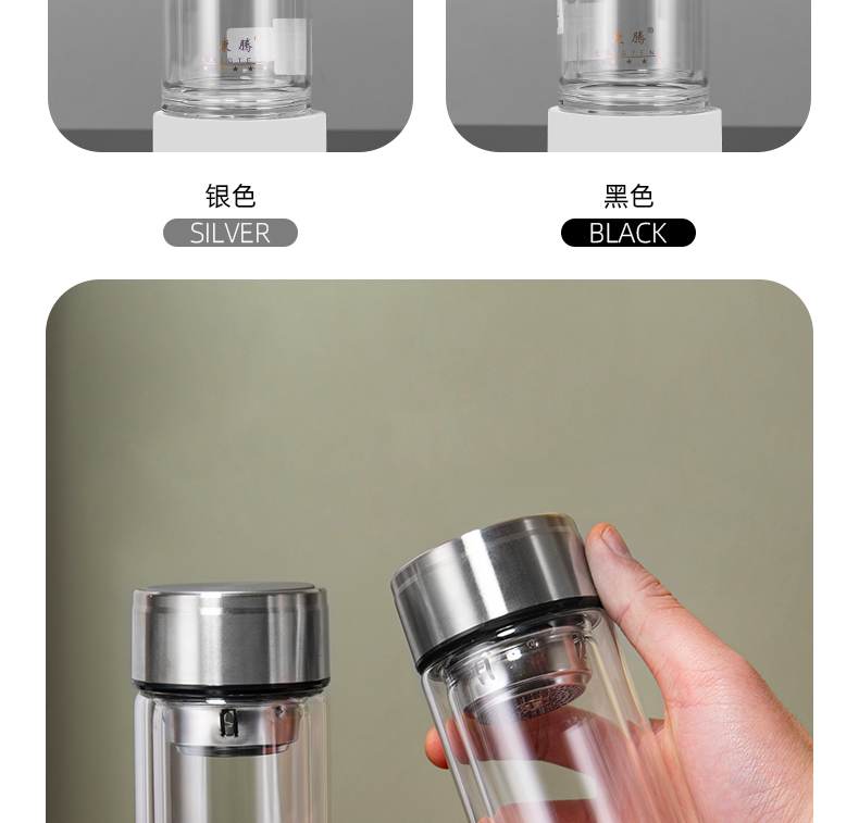 180ML简约商务玻璃杯男士双层泡茶水杯办公礼品杯子