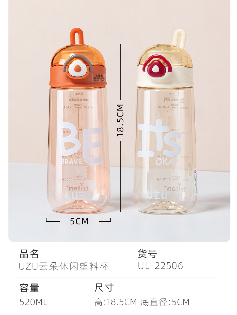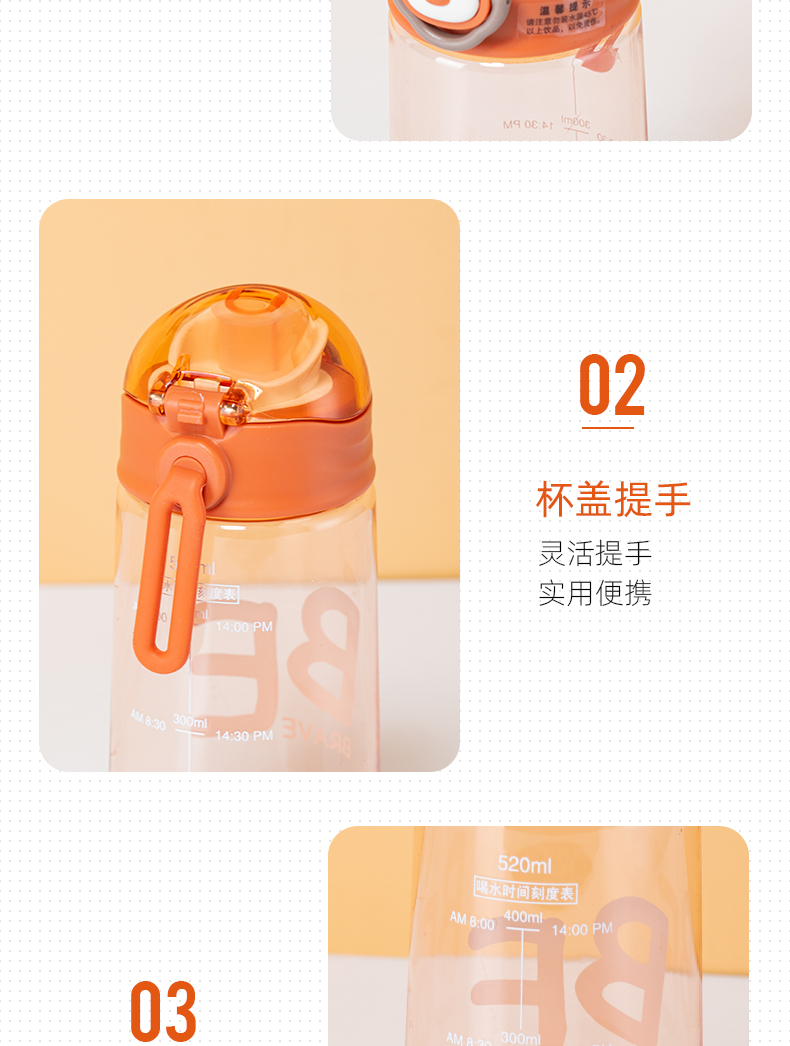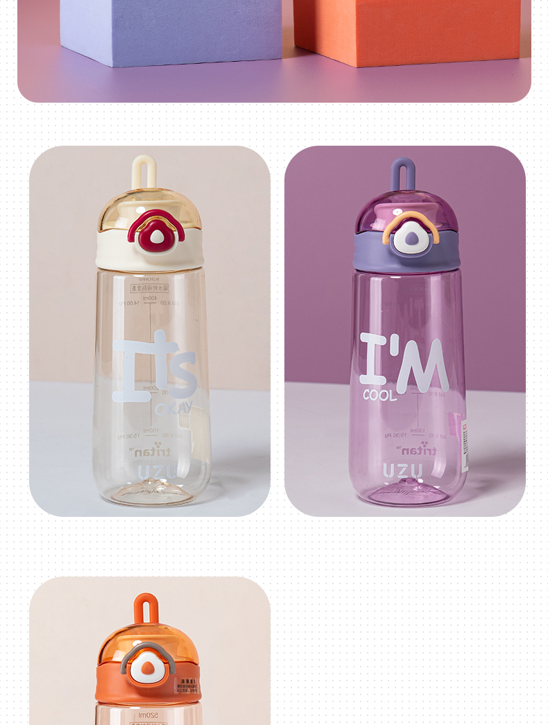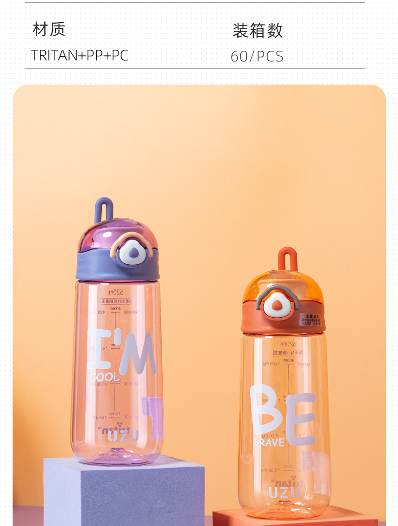 500ML亿本悦色太空杯创意手提绳便携带塑料杯