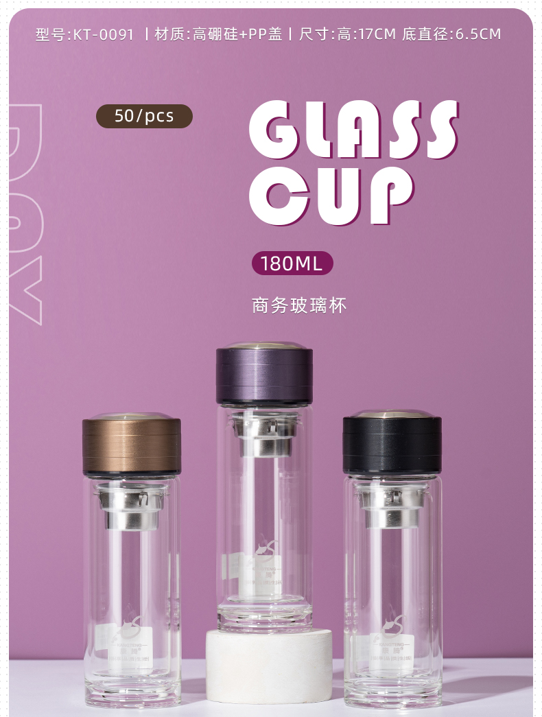 220ML简约商务玻璃杯男士双层泡茶水杯办公礼品杯子
