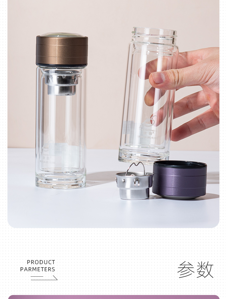 360ML简约商务玻璃杯男士双层泡茶水杯办公礼品杯子