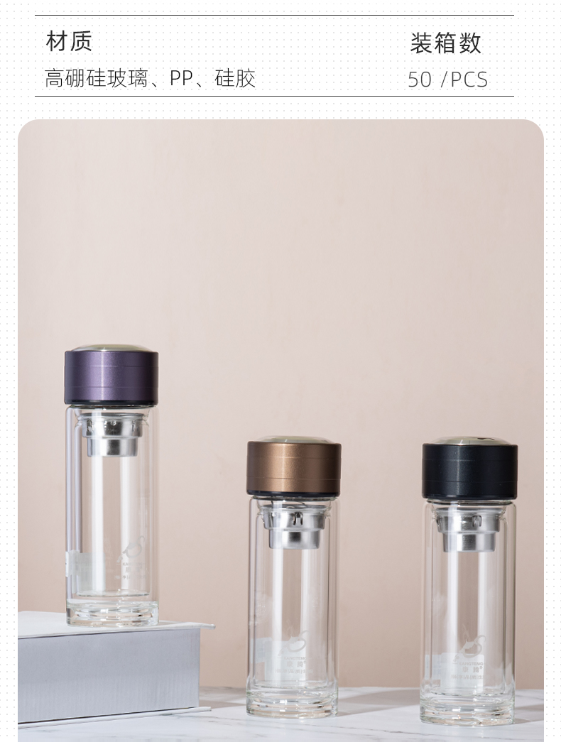 300ML商务玻璃杯男士简约双层泡茶水杯办公礼品杯子