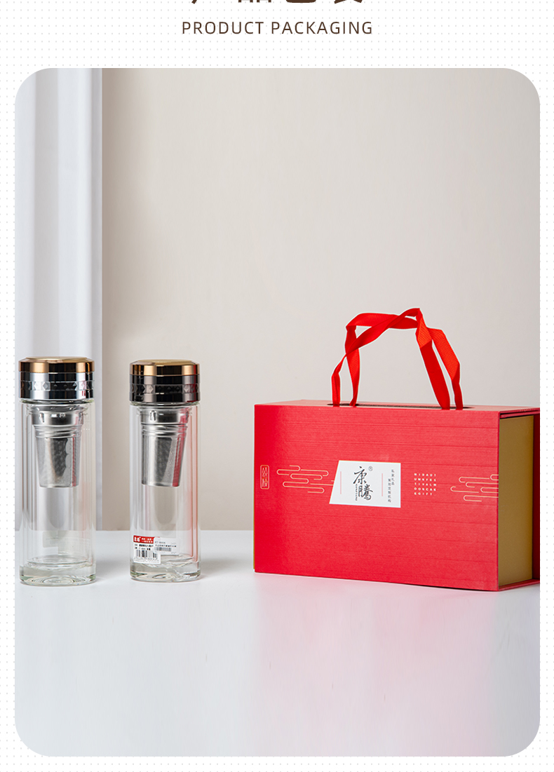 300ML礼盒装商务玻璃杯双层泡茶水杯办公礼品杯子