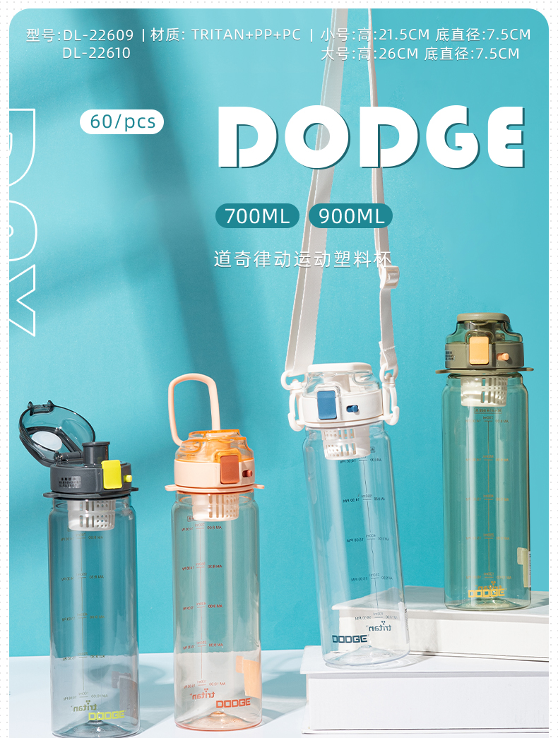 900ML道奇灵动运动吸管塑料杯Tritan户外旅行便携水杯