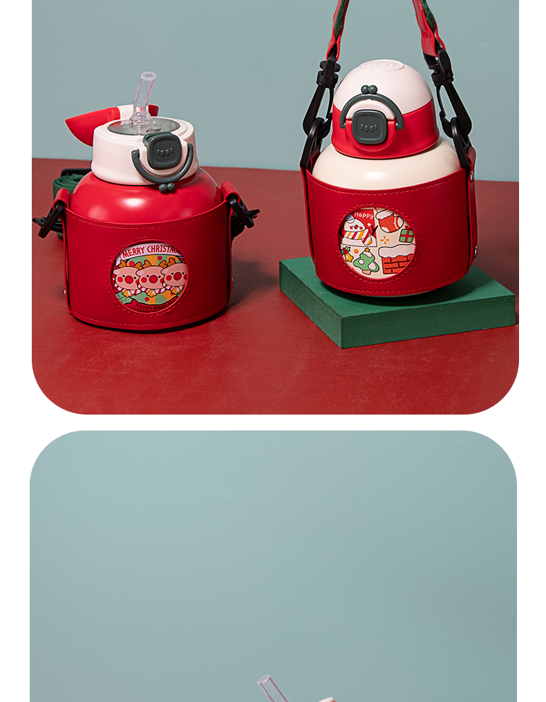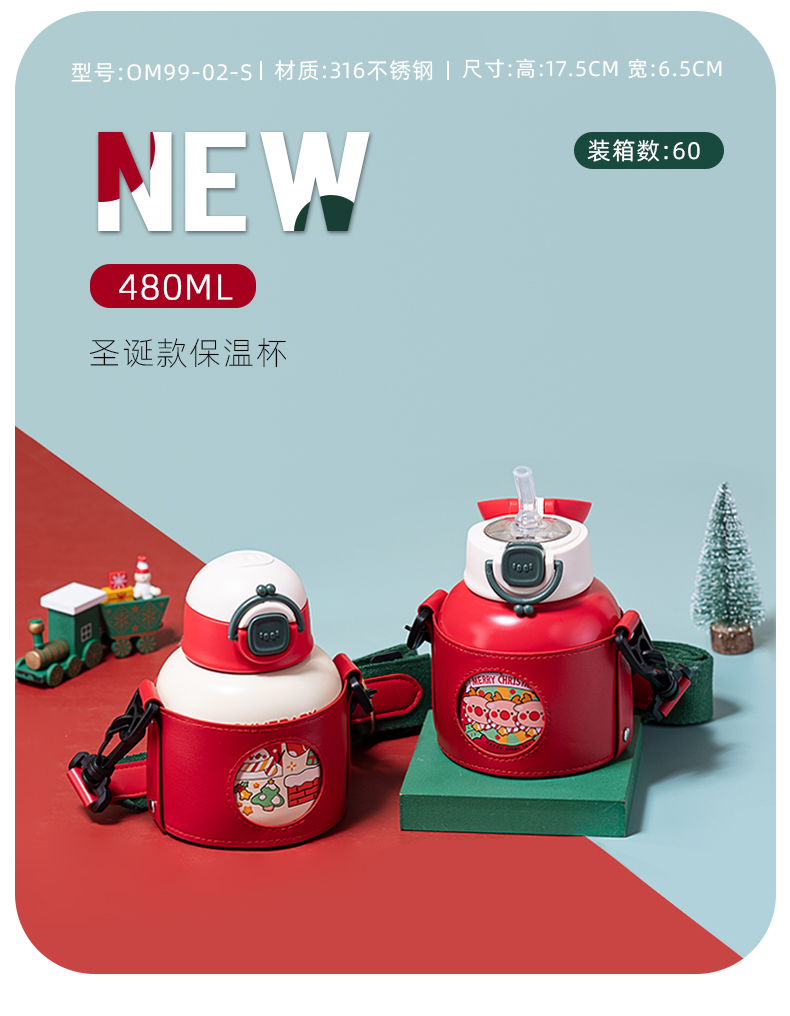 480ML萌酱零食团保温杯可爱公仔背带水杯弹盖吸管杯