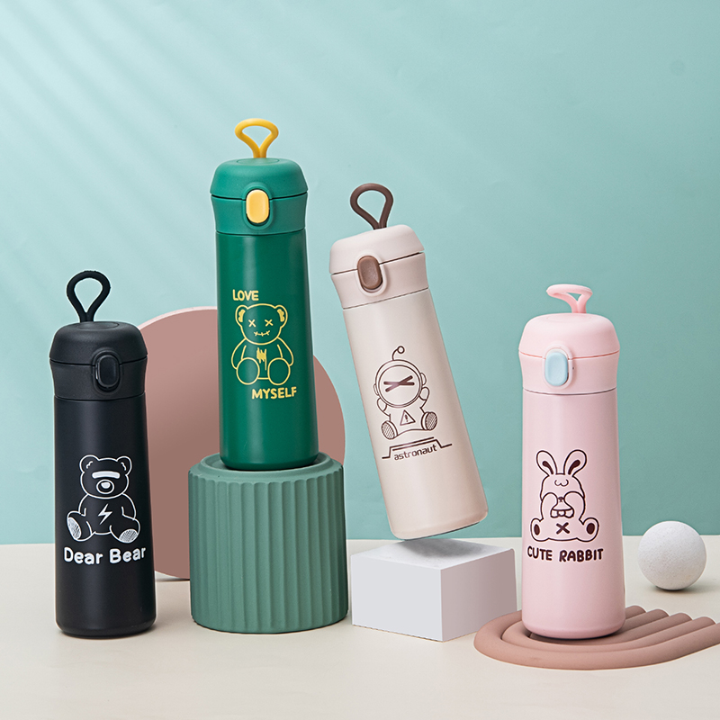 450ML酷酷动物弹跳保温杯304不锈钢便携直饮水杯