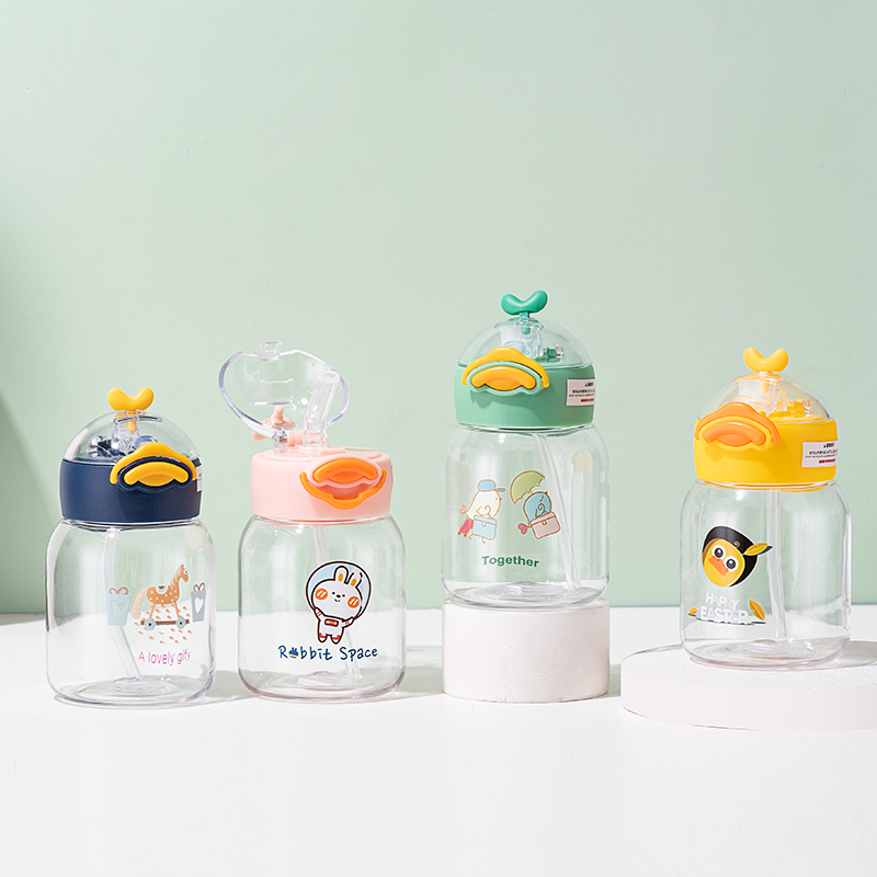 300ML卡通小鸭吸管塑料杯清新可爱便携提手弹盖水杯