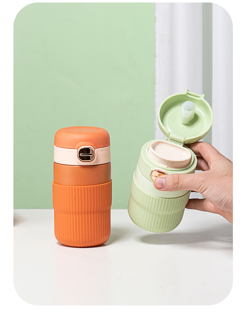 550ML简约纯色真空保温杯304不锈钢弹跳盖手提水杯
