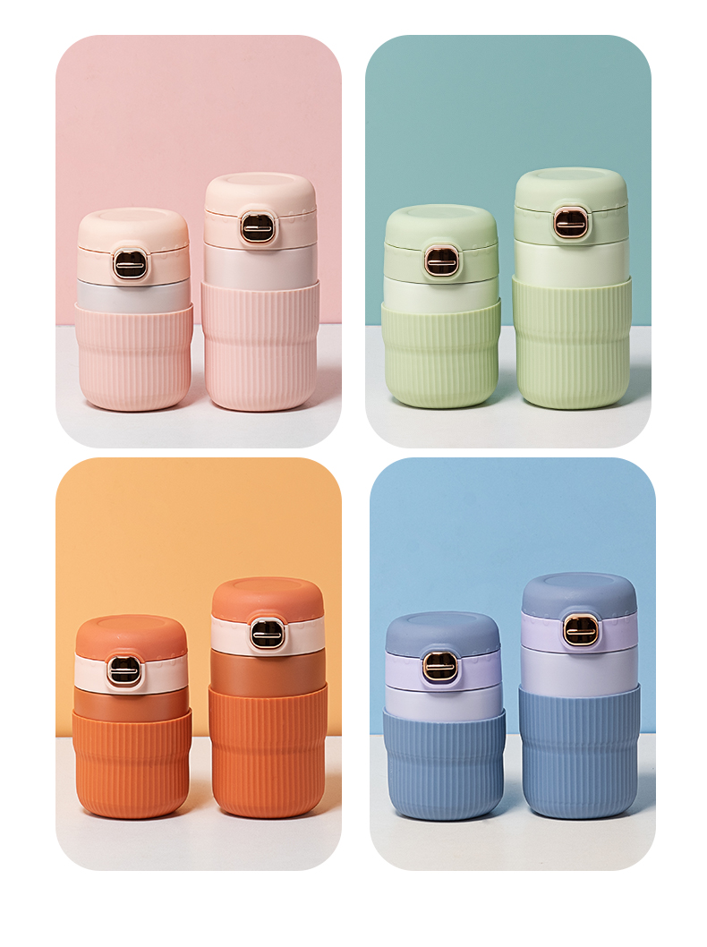 300ML可爱小熊系列保温杯便携随手弹盖式吸管学生杯