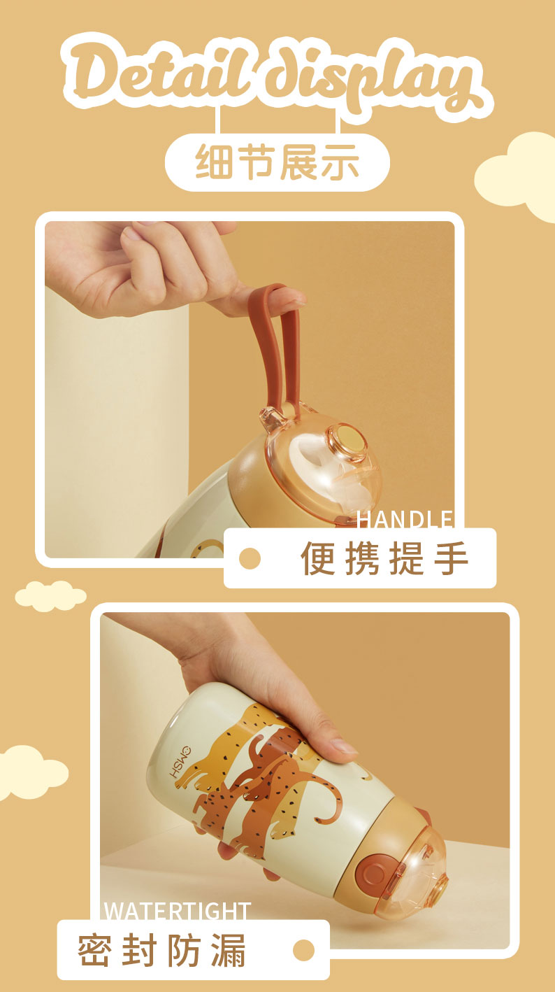 600ML大容量多功能背带水壶可爱斜跨少女心保温杯