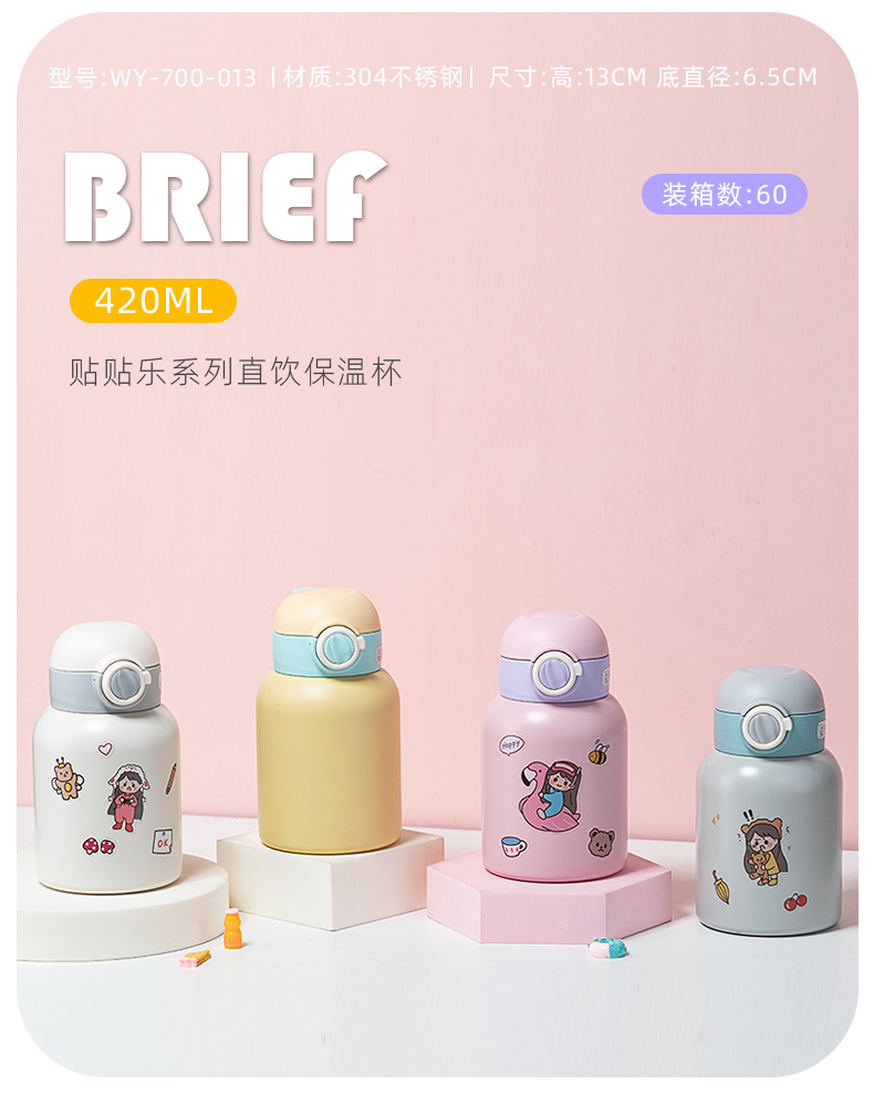450ML创意潮玩系列贴纸保温杯学生可爱便携吸管水杯