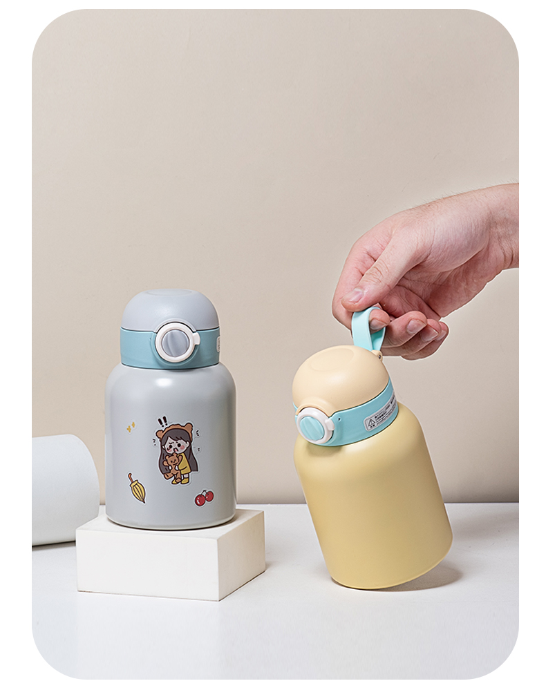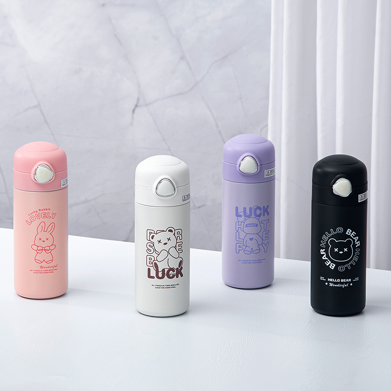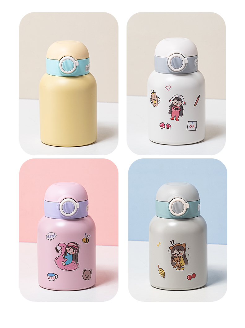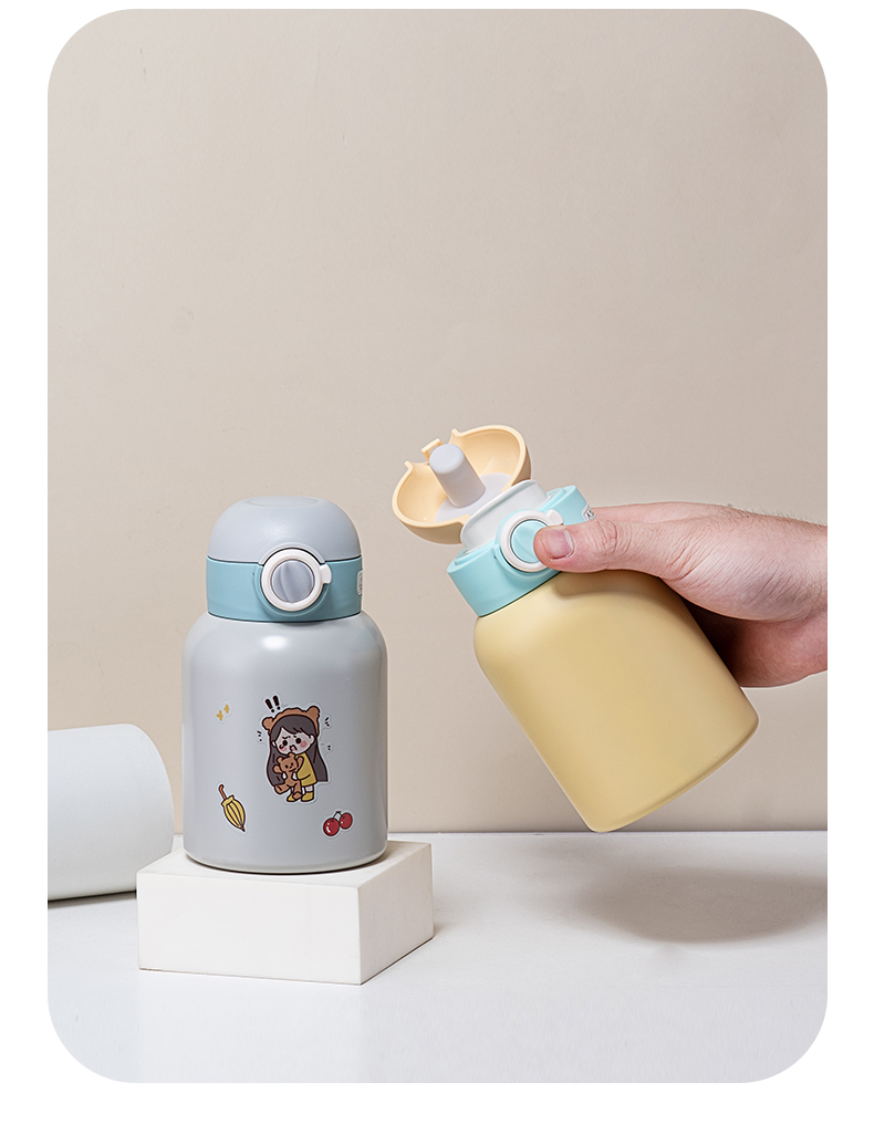 350ML欧雅线描卡通保温杯304不锈钢弹跳盖吸管杯