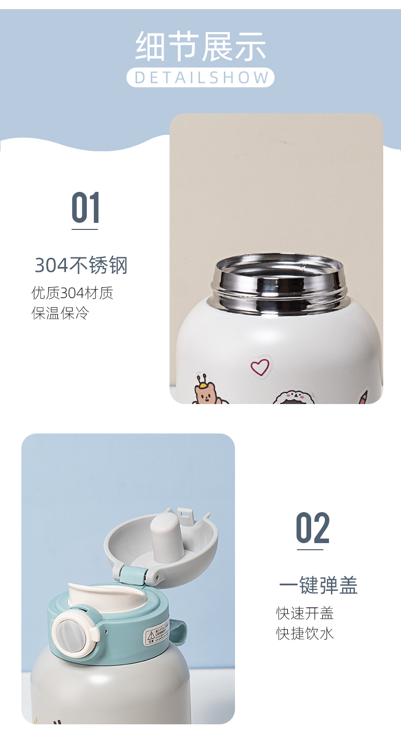 500ML小萌兔精灵直饮保温杯304不锈钢单盖儿童吸管杯