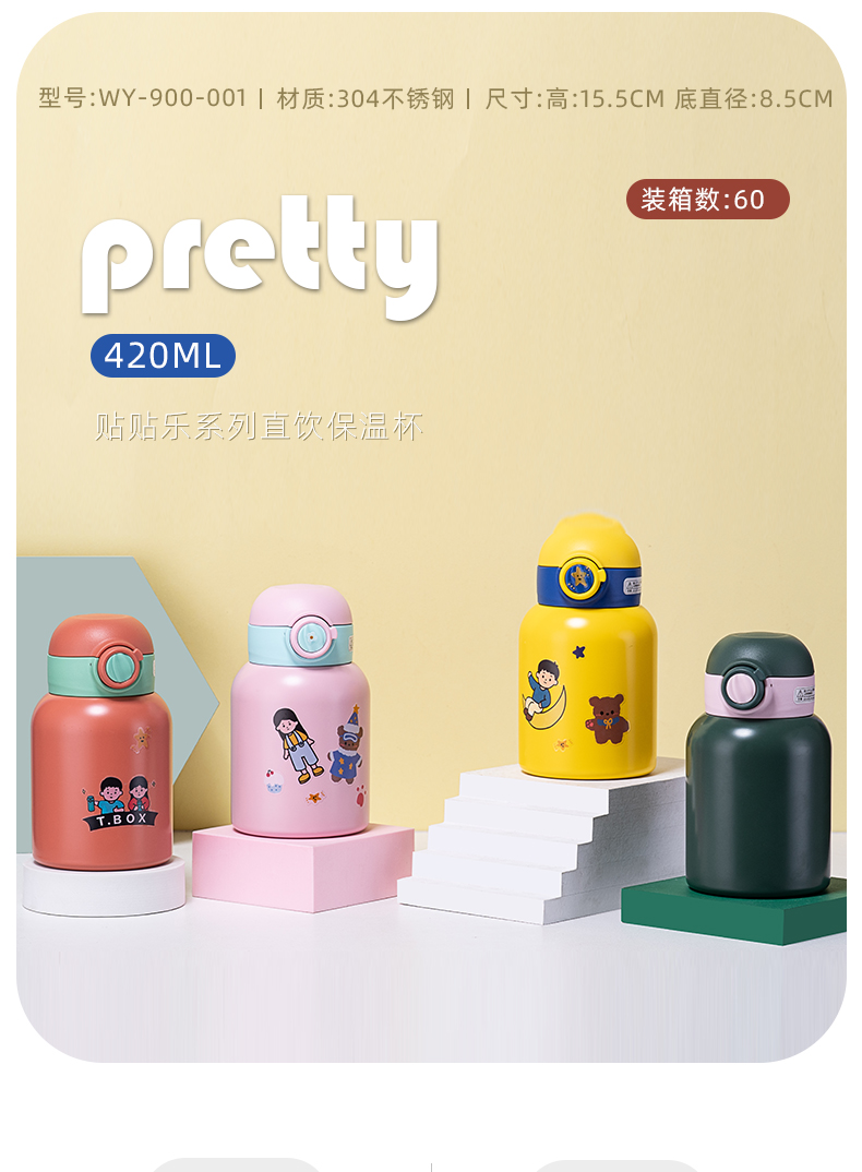 260ML撞色英文款思诺保温杯304不锈钢弹跳盖水杯