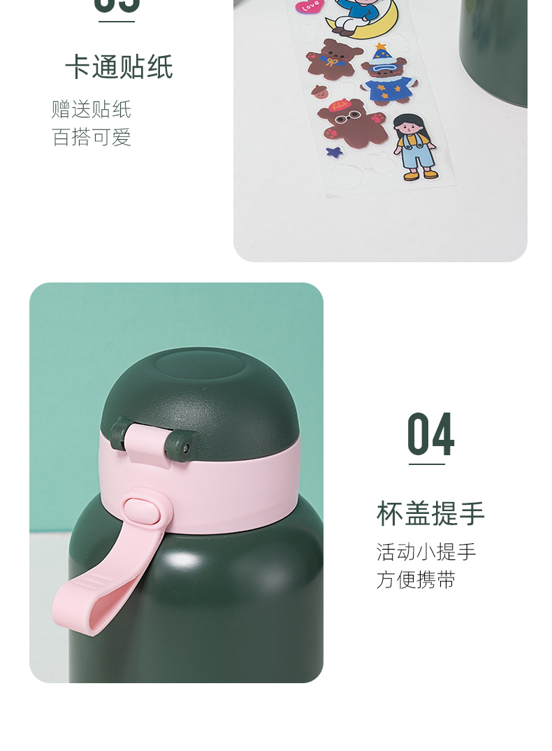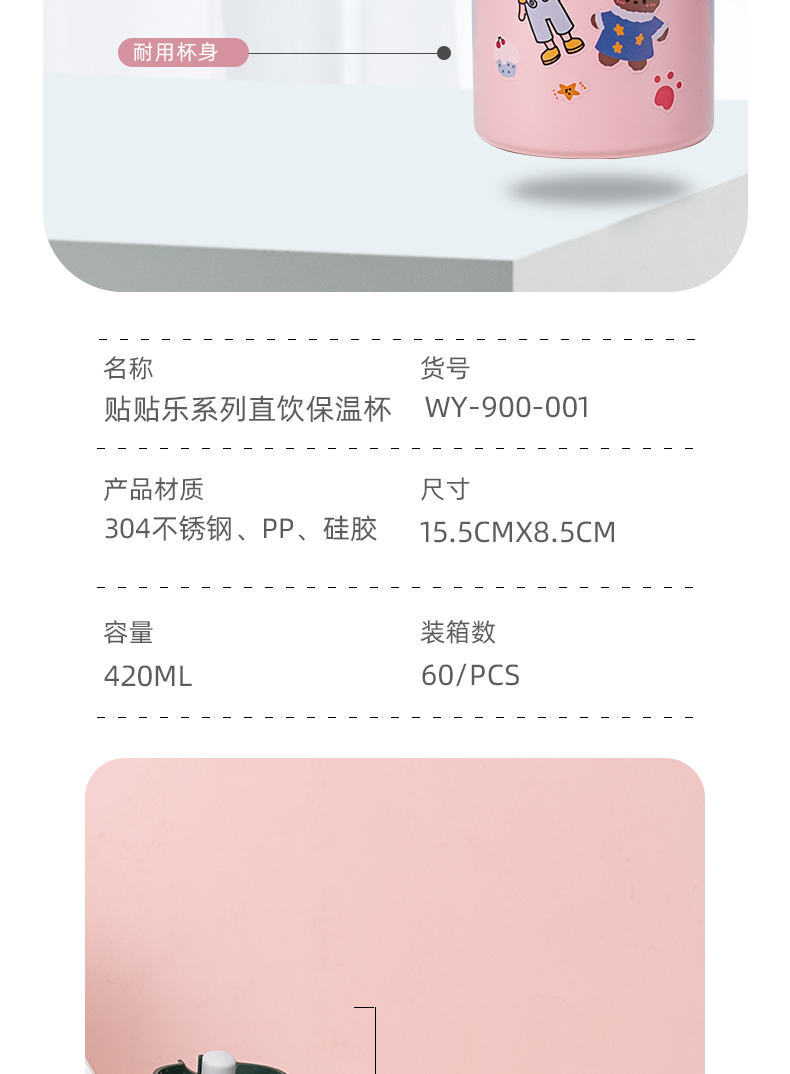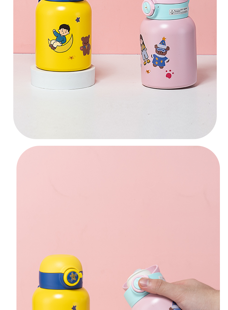 500ML卡通萌熊实色吸管KAOLA保温杯304不锈钢水杯