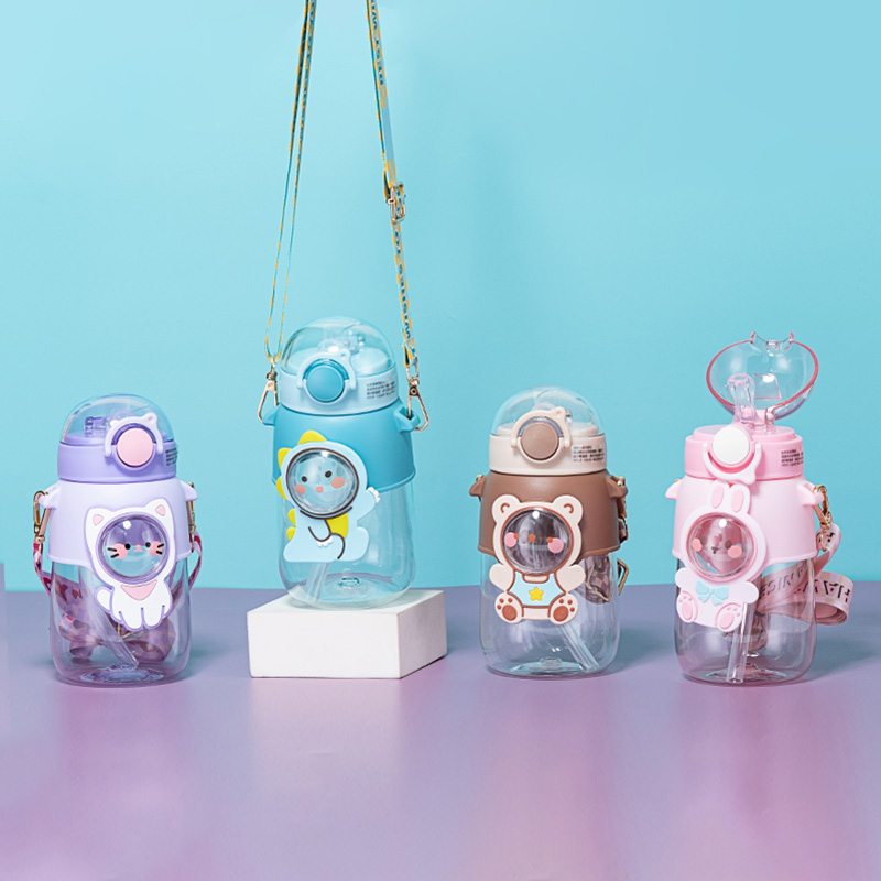 720ML卡通软萌动物吸管背带塑料杯可爱水杯(彩盒)