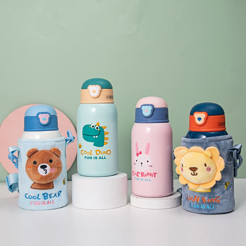 600ml萌趣叫叫卡通儿童壶立体绒布套可爱吸管保温杯