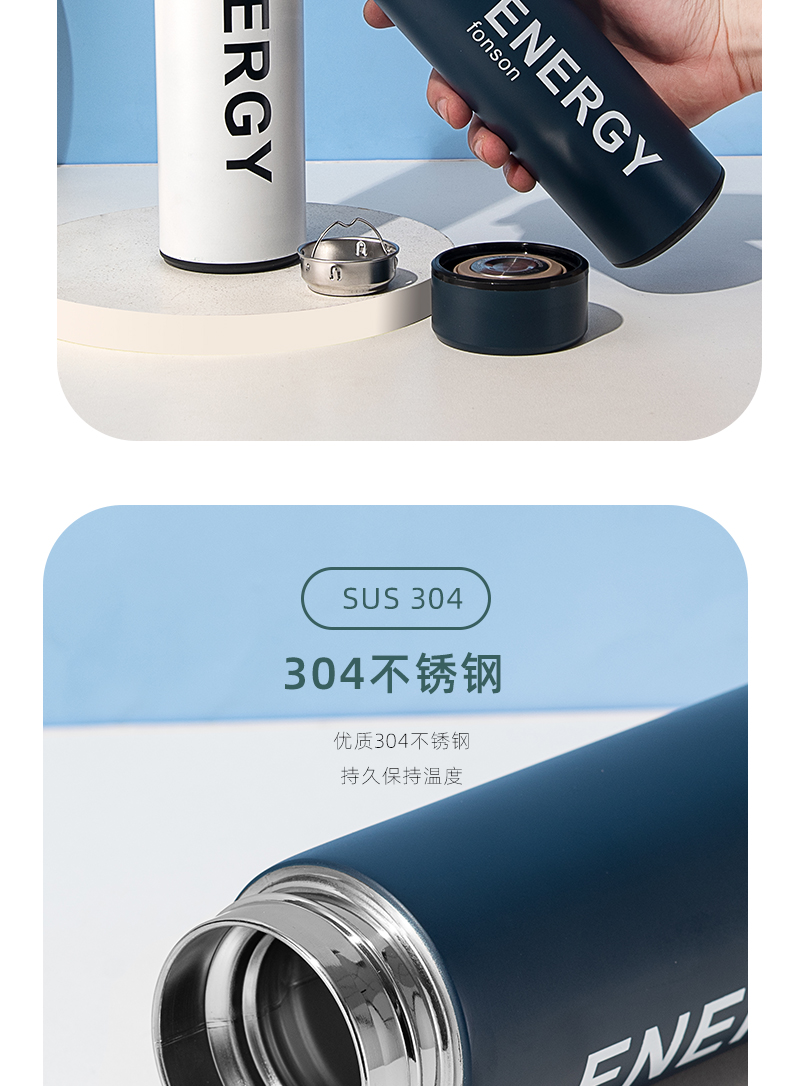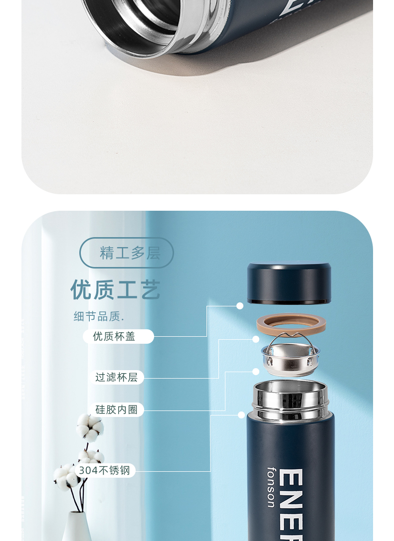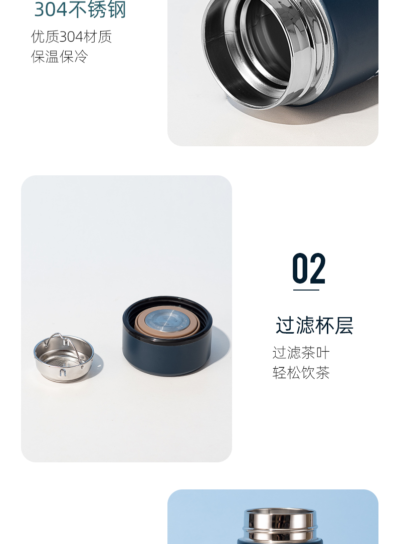 460ML简约酷酷保温杯304不锈钢带茶隔男女士直饮水杯