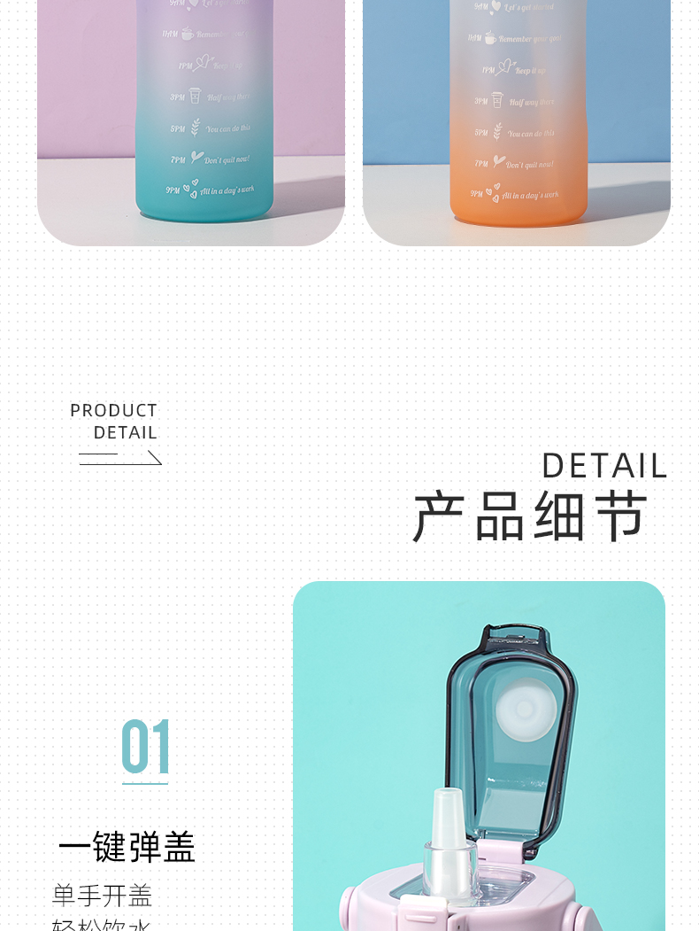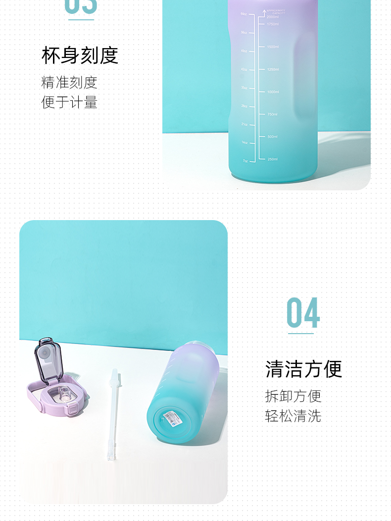 1500ML亿本纯享双饮太空塑料杯渐变色便携水杯(TPE袋)