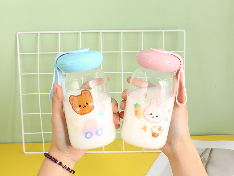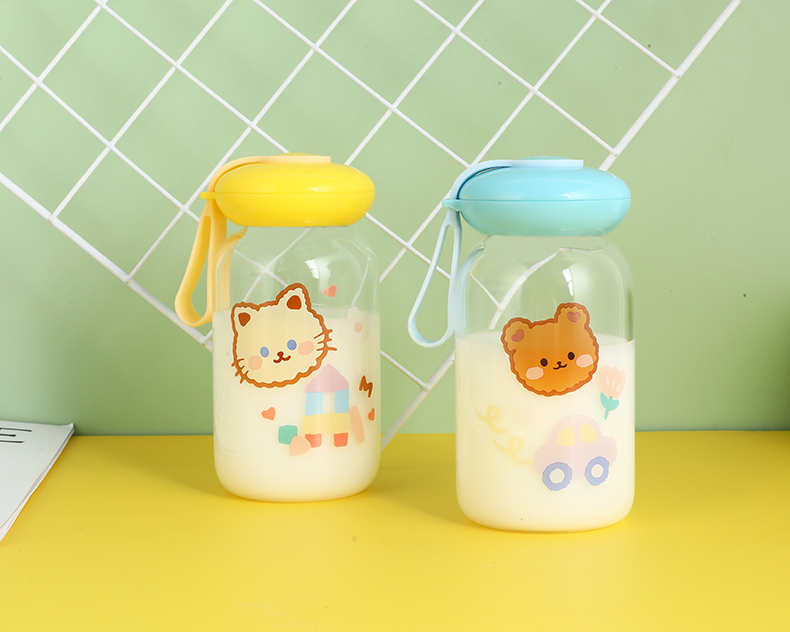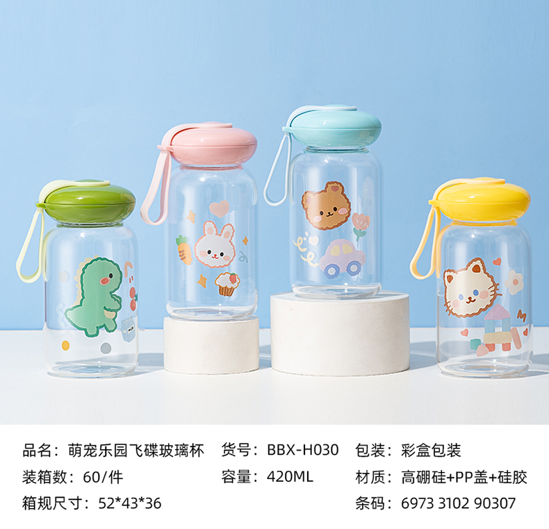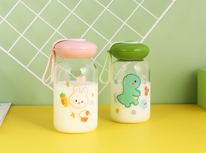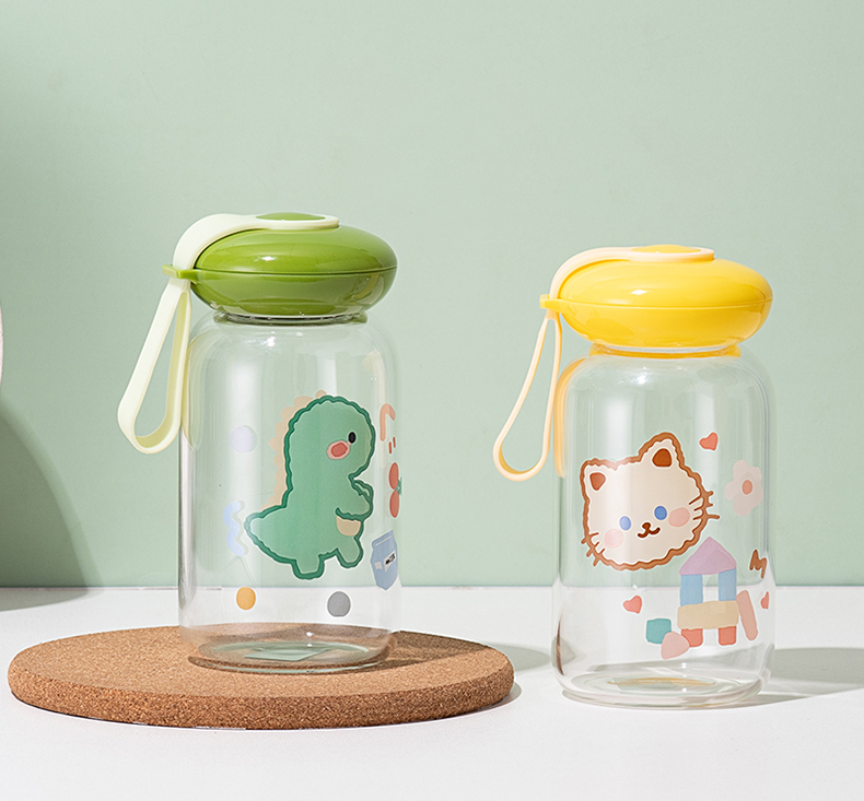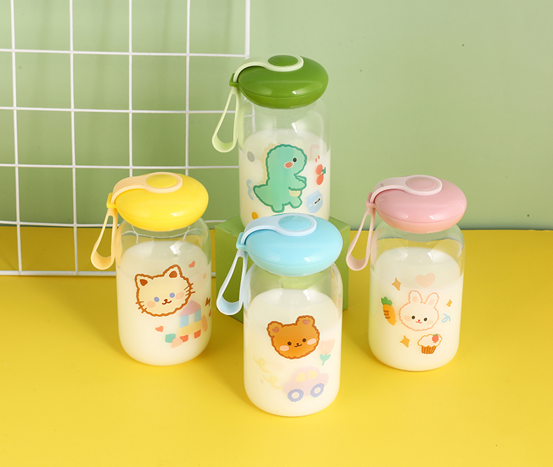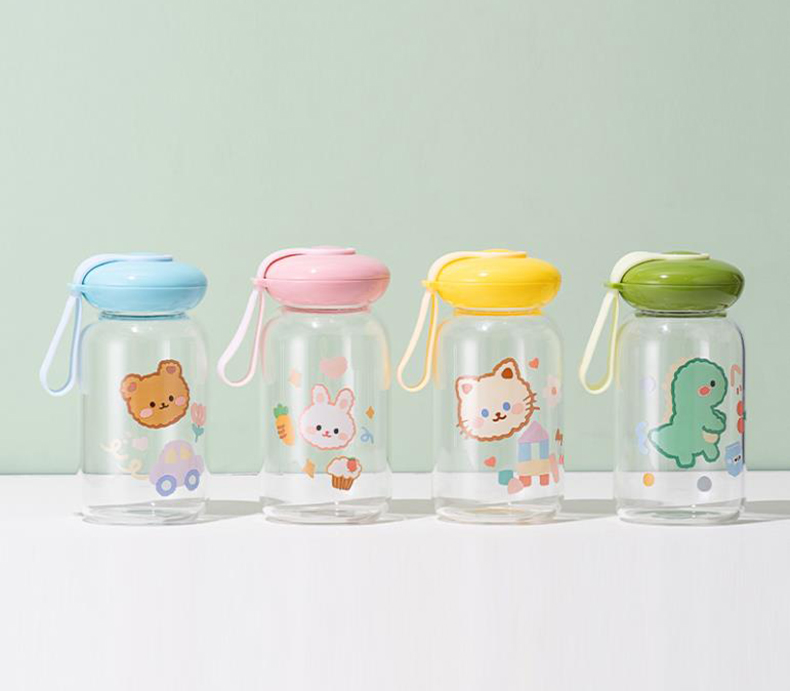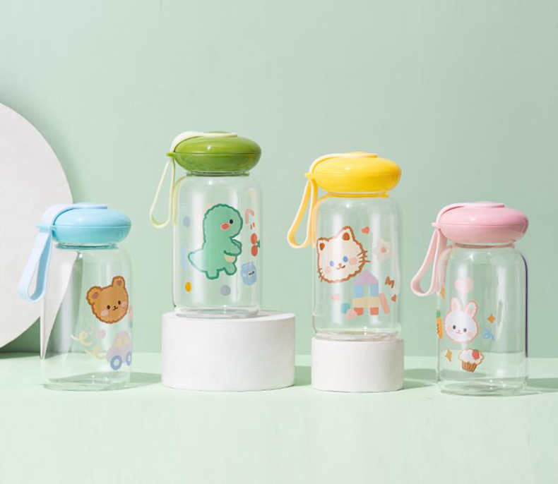 可爱卡通水杯儿童耐热创意玻璃杯户外便携卡通水杯壶摆摊杯子批发