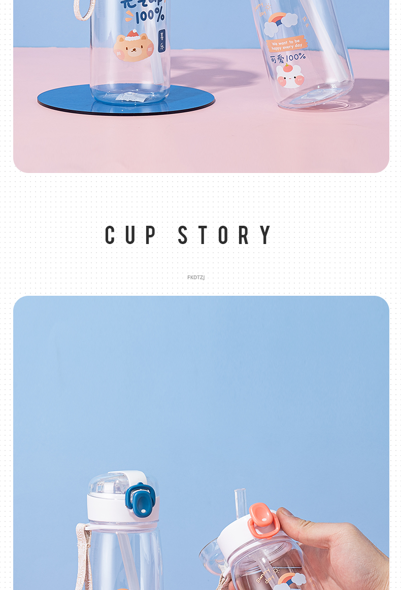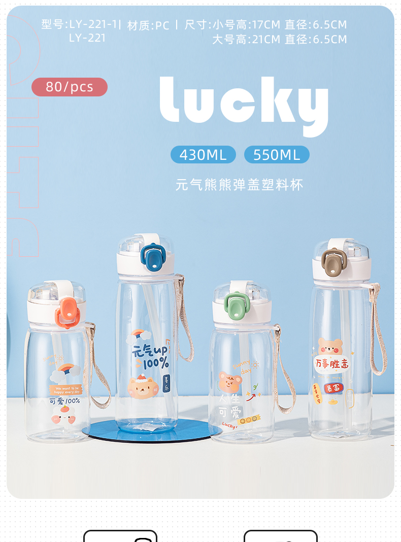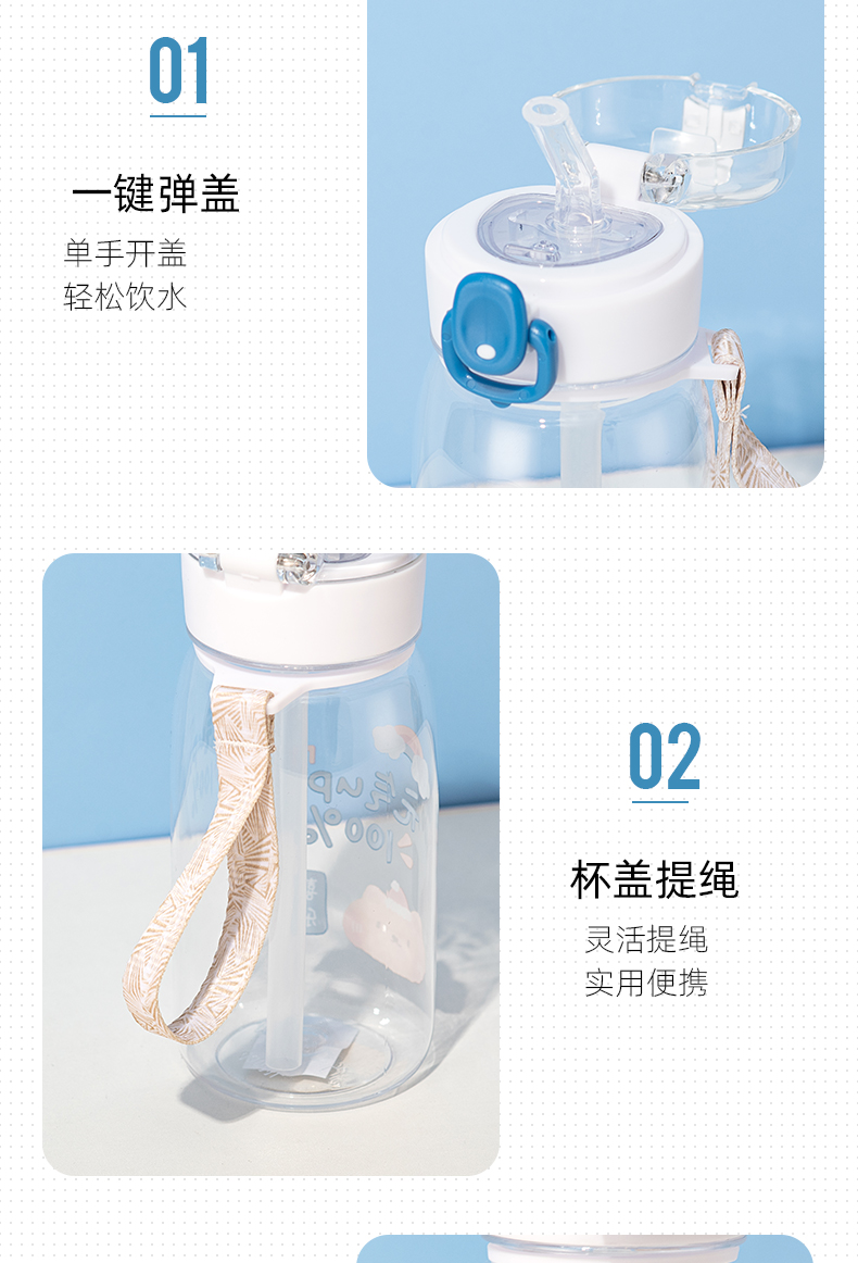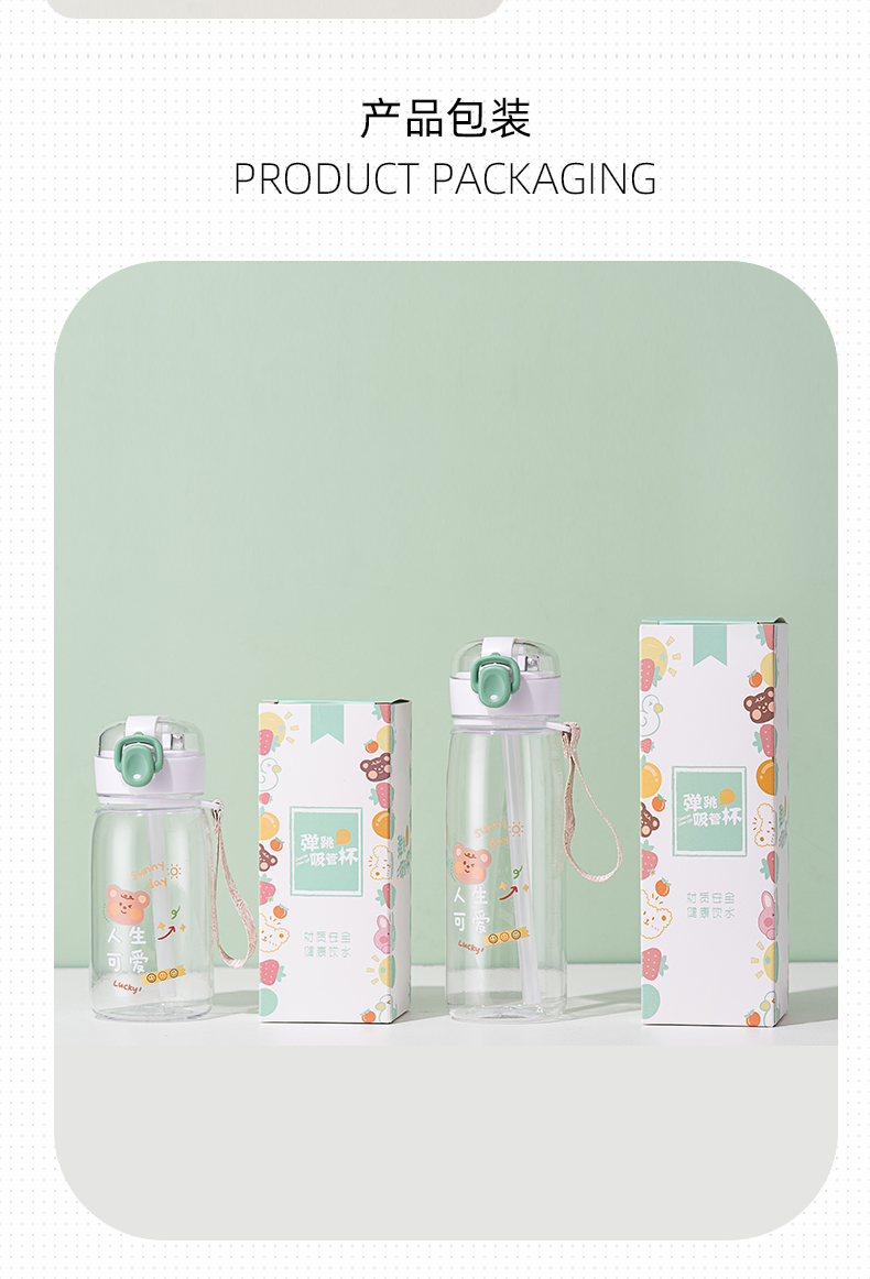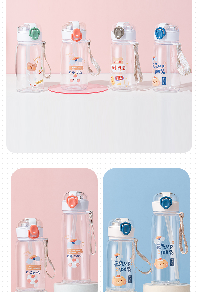 550ML元气熊熊弹盖吸管塑料杯简约清新学生便携杯子