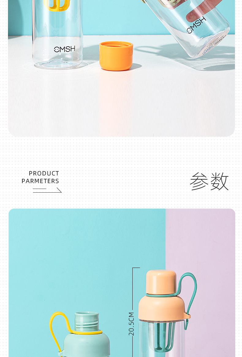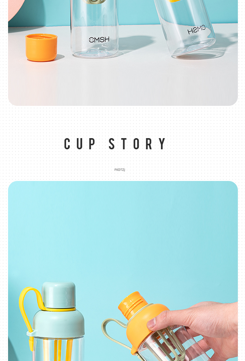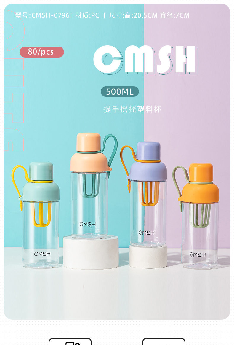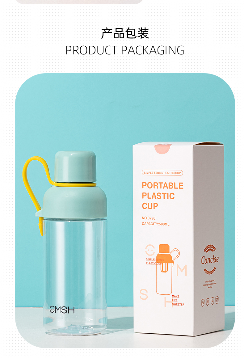 500ML英文弹盖提绳塑料杯创意潮流运动水杯