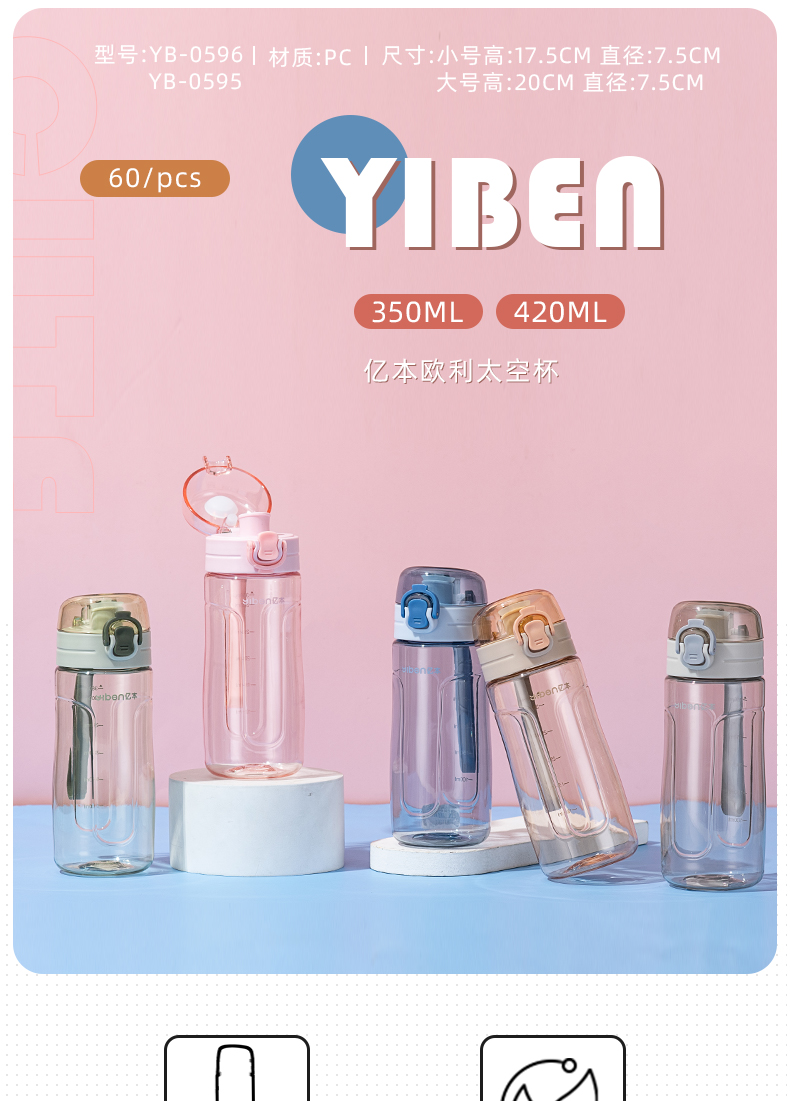 500ML亿本悦色太空杯创意手提绳便携带塑料杯