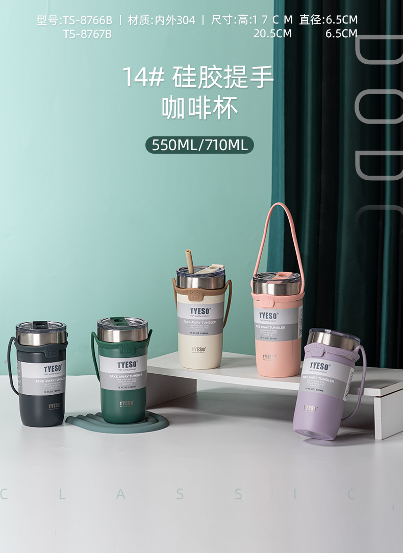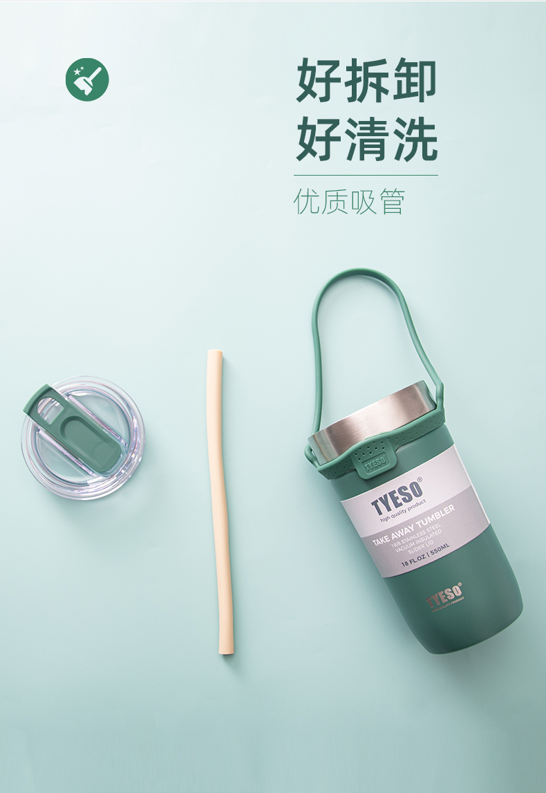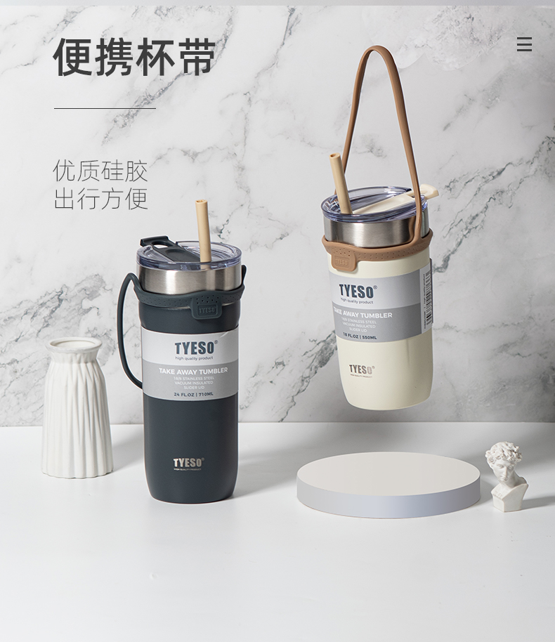 600ML大容量12#咖啡杯304不锈钢车载保温杯带吸管