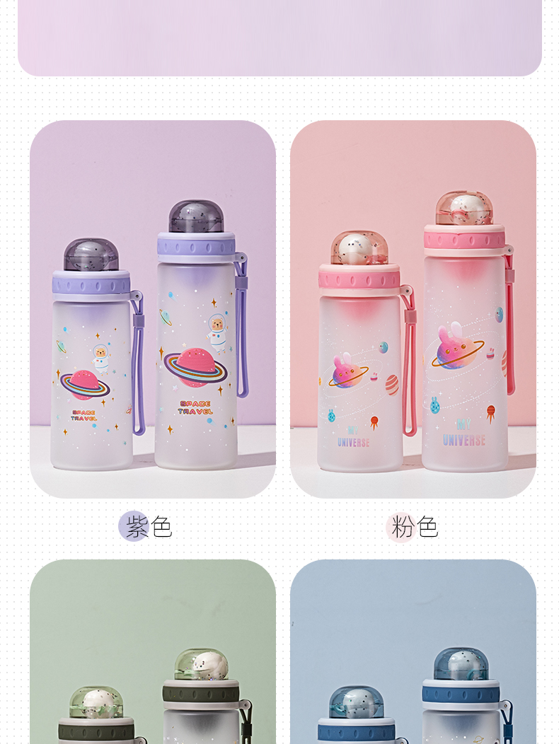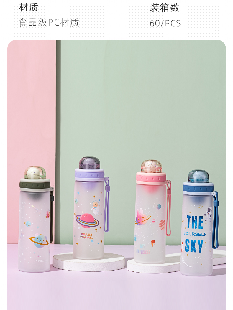500ML亿本悦色太空杯创意手提绳便携带塑料杯