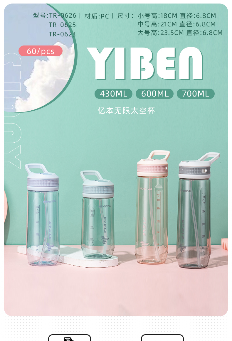 700ML亿本铭宇太空杯学生便携随手杯吸管塑料杯(彩盒)