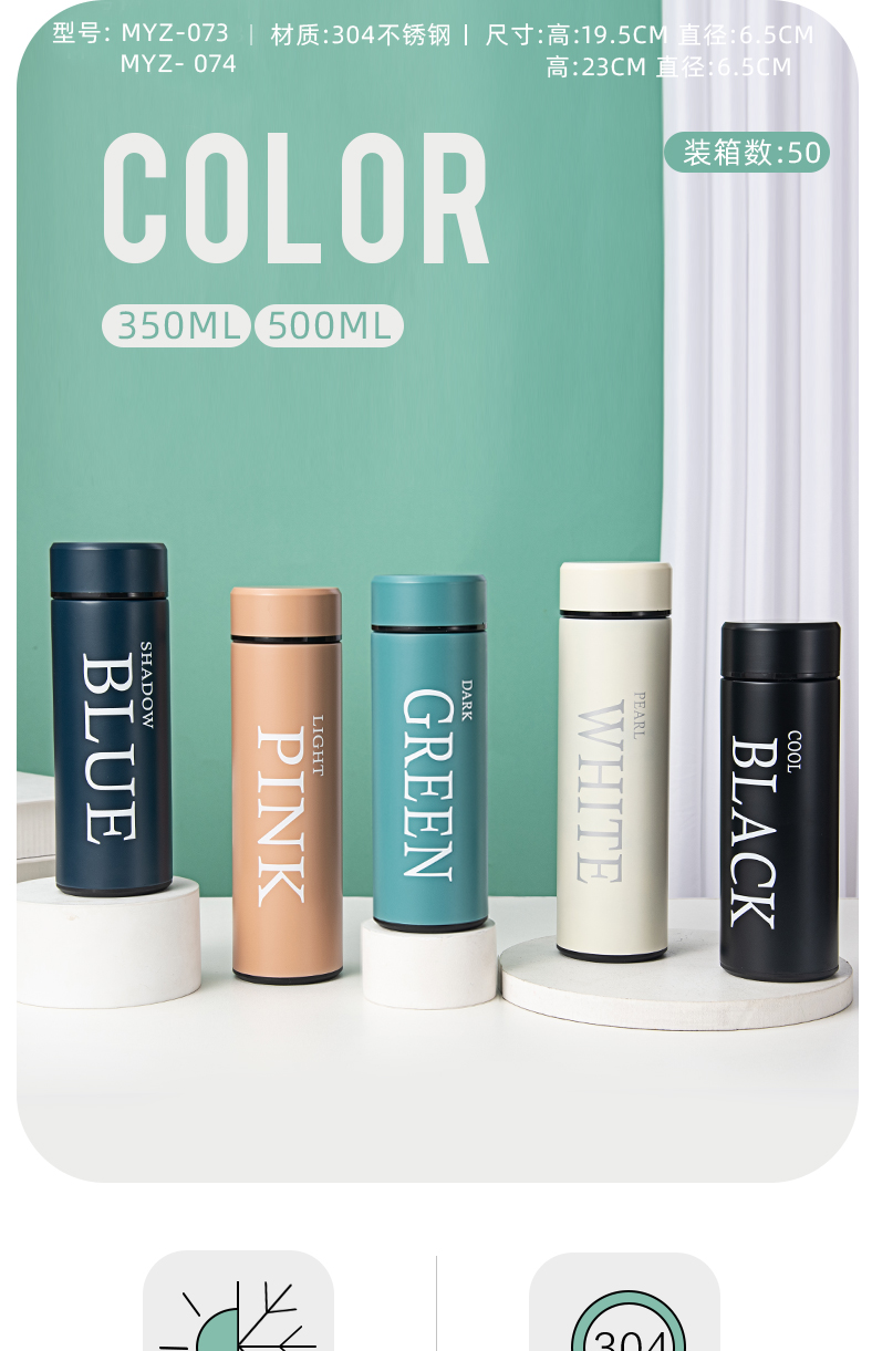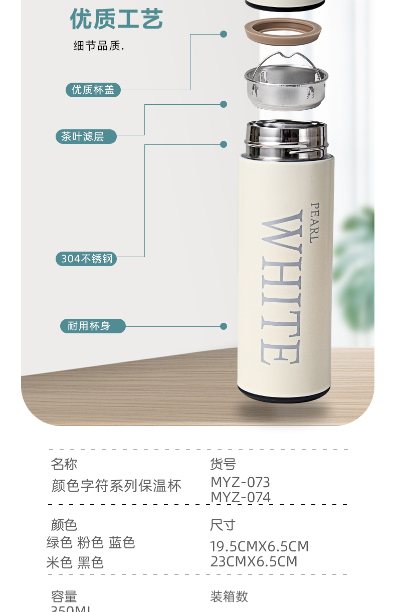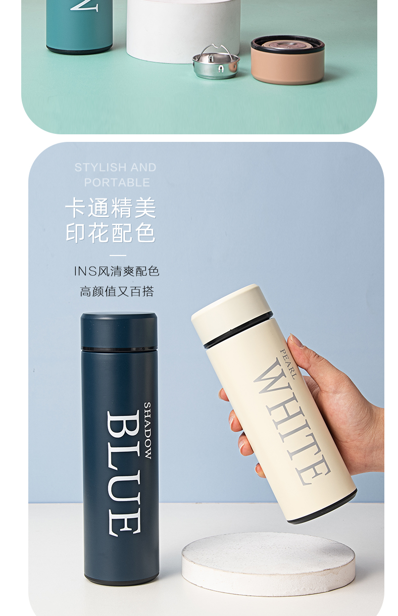 350ML简约酷酷保温杯304不锈钢带茶隔男女士直饮水杯