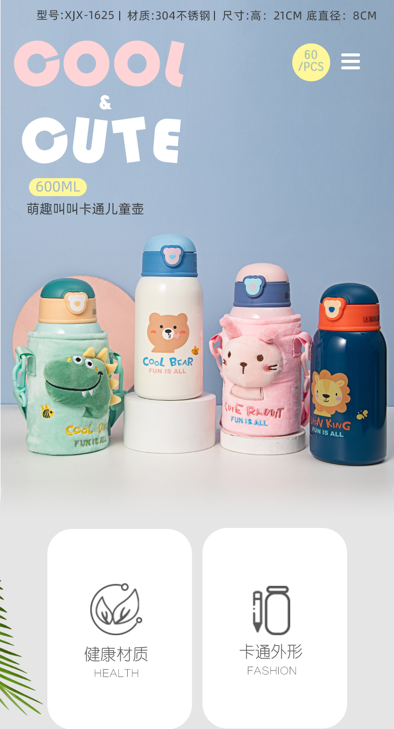 500ML儿童不锈钢真空闷烧壶 史洛比手提焖烧杯 保温饭桶