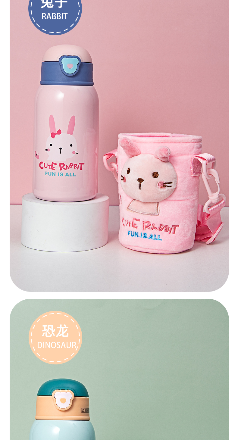 样品星兔创意卡通水杯儿童弹跳吸管杯可爱运动户外背带学生塑料杯