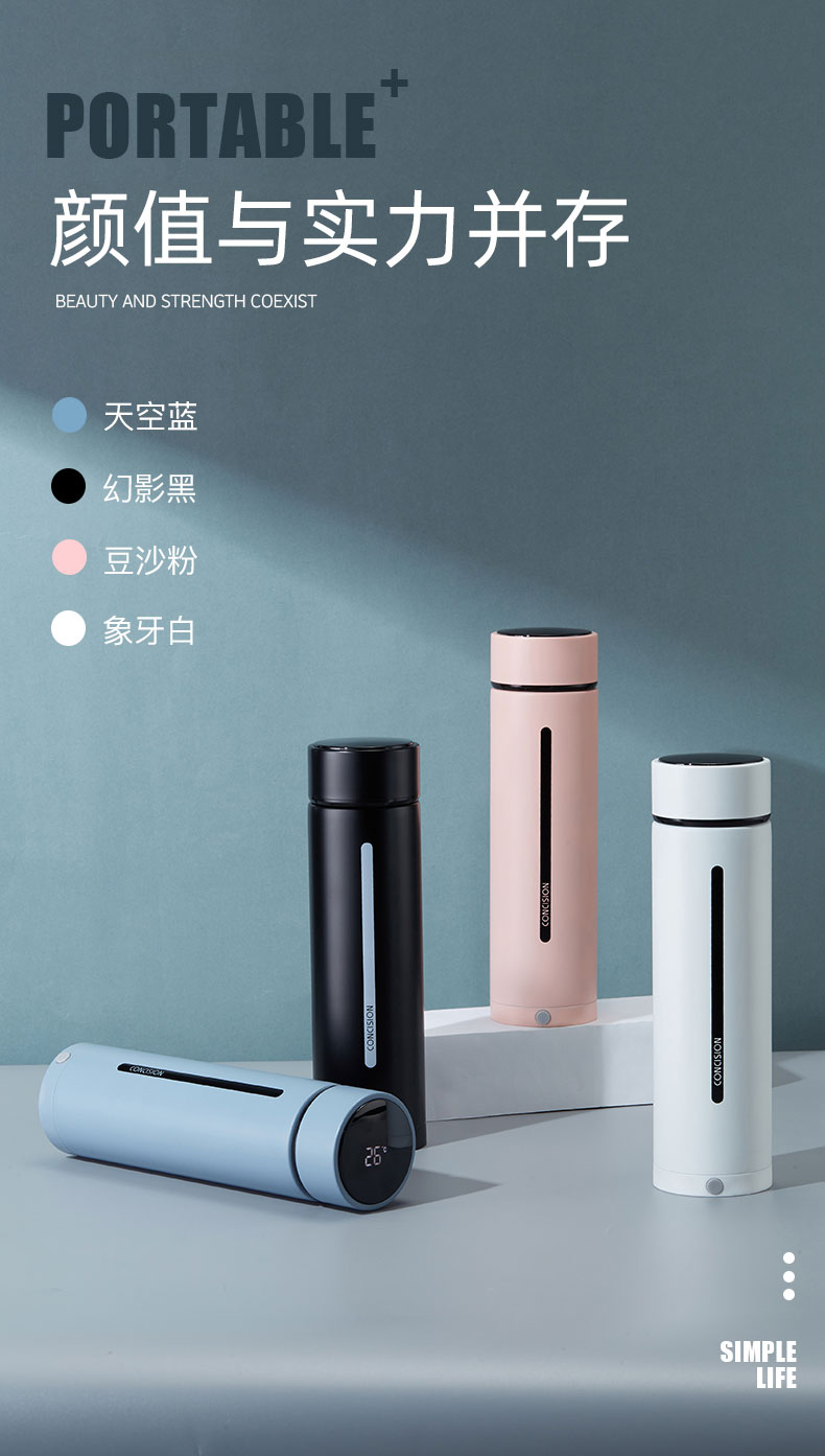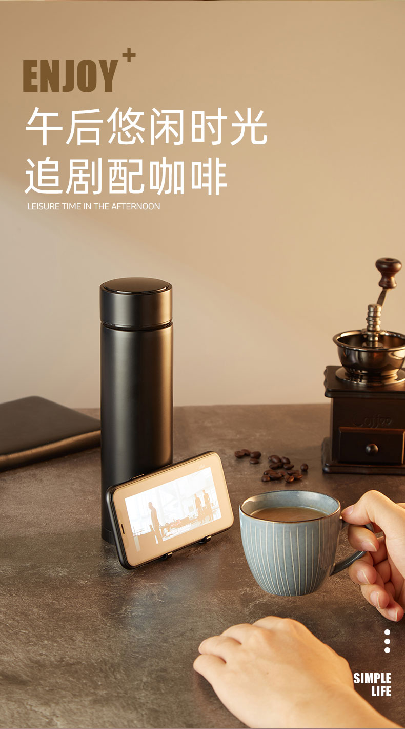 430ML温显弹盖保温杯男女304不锈钢带茶漏商务礼品杯
